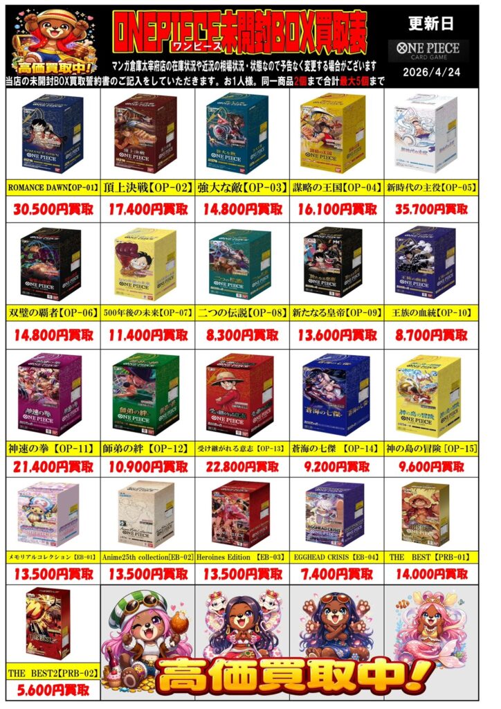 ワンピース 〝 未開封BOX買取告知 〟更新しました〜〜! こちら記載のB…