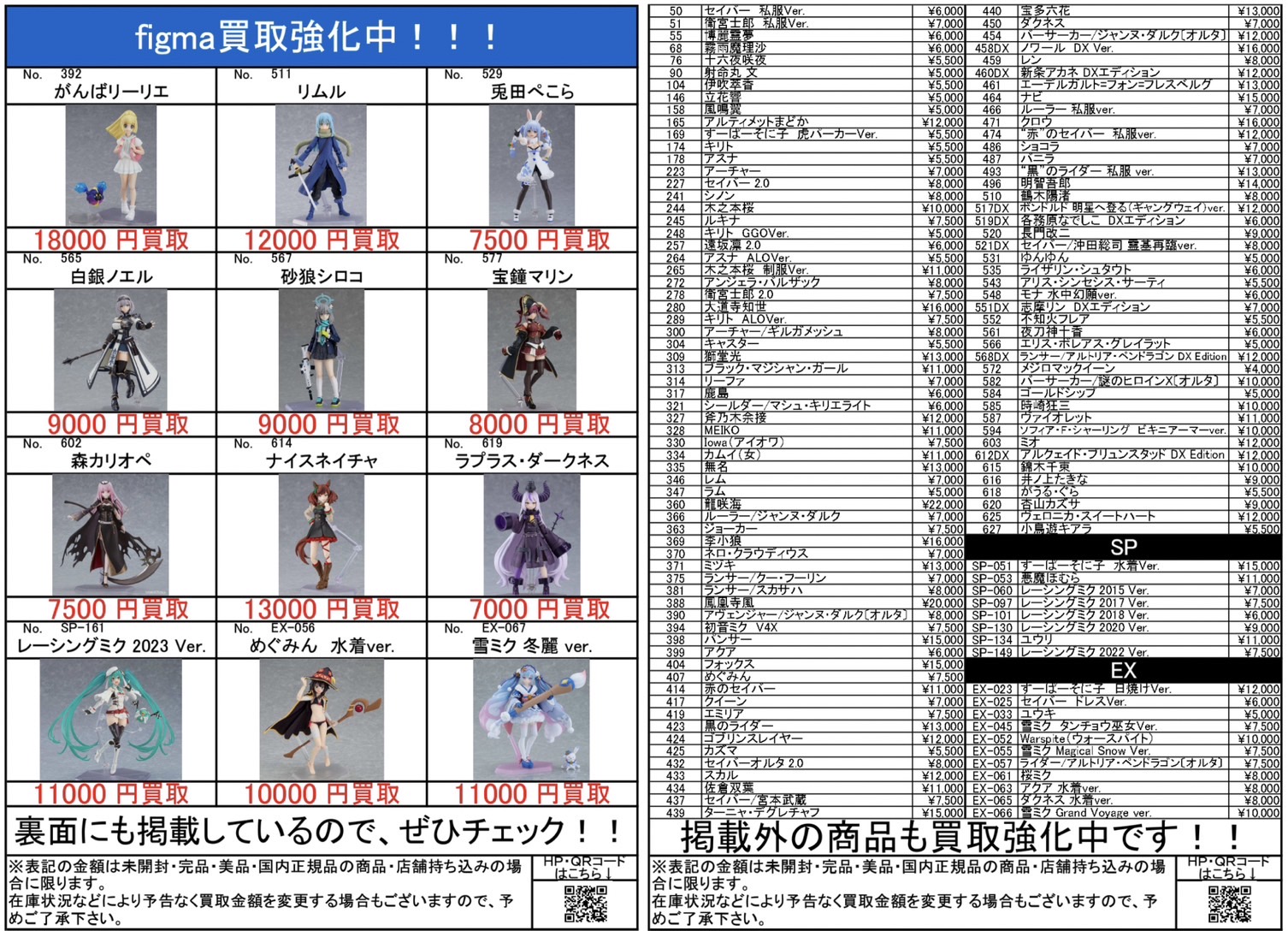 ■figmaシリーズ買取大募集🔥#figma #美少女フィギュア #おもちゃ #マンガ倉庫太宰府店 #買取 #福岡 #太宰府■ NEW おもちゃ 買取告知 2025年1月17日 figmaシリーズ買取大募集🔥 チラシに載ってるのはもちろん、掲載外の商品も買取強化中です‼️ さらに買取にお持ち頂くと20%プラスアップもしちゃいます!!! 是非マンガ倉庫太宰府店にお持ち込み下さいませ✨️✨️ ※2025/1/17現在の価格となります。 在庫状況などによってお値段が変動いたします。予めご了承ください。 ★店舗《Instagram / Twitter》フォローお願いします★ ★買取告知・イベント情報はこちら★ ★各部門の買取・入荷情報はこちら★ 共有: クリックして X で共有 (新しいウィンドウで開きます) X Facebook で共有するにはクリックしてください (新しいウィンドウで開きます) Facebook