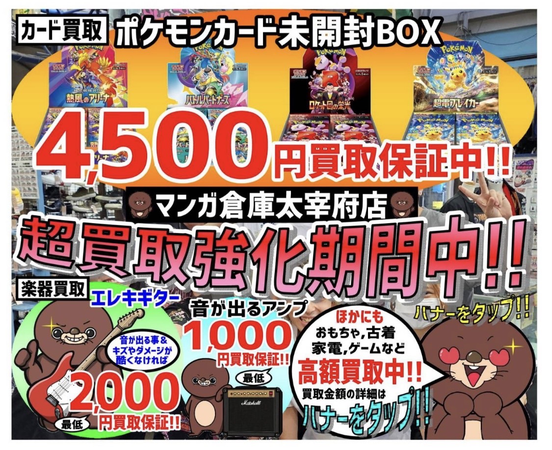 カードではポケモンカード未開封BOXを最低4500円保証中!もちろん人気BOXは高価買取中です!