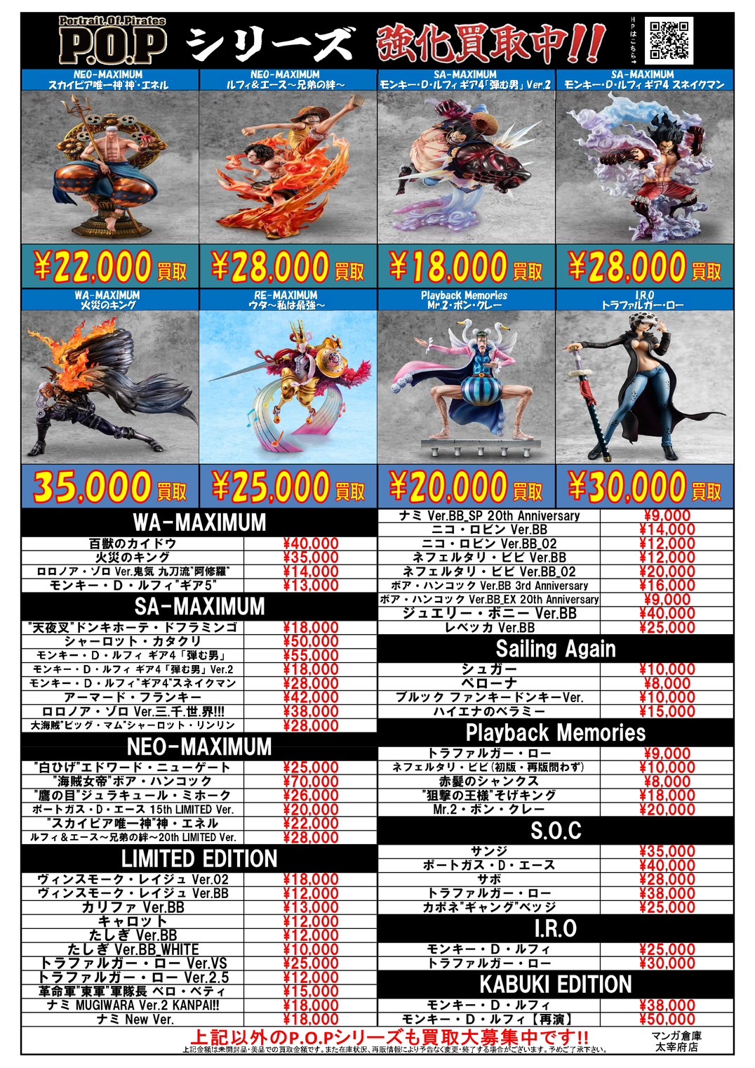 ◆ワンピース P.O.Pシリーズ 買取告知更新致しました‼️◆ #ONEPIECE #ワンピース #ワンピースフィギュア #POP_MH #フィギュア #おもちゃ #マンガ倉庫太宰府店 #買取 #福岡 #太宰府 おもちゃ 買取告知 2025年6月2日 ワンピース P.O.Pシリーズ👒🏴☠️ 買取告知更新致しました‼️ 上記掲載外のP.O.Pシリーズも買取致しますので、是非マンガ倉庫太宰府店にお持ち込み下さい✨ ※2025/6/2現在の価格となります。 在庫状況などによってお値段が変動いたします。予めご了承ください。 ★店舗《Instagram / Twitter》フォローお願いします★ ★買取告知・イベント情報はこちら★ ★各部門の買取・入荷情報はこちら★ 共有: クリックして X で共有 (新しいウィンドウで開きます) X Facebook で共有するにはクリックしてください (新しいウィンドウで開きます) Facebook