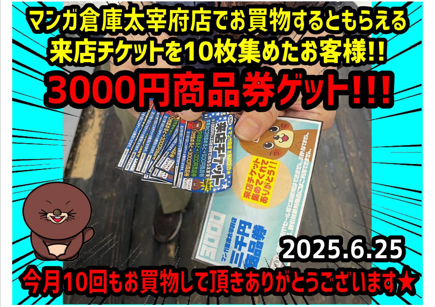 ■来店チケットイベント開催中です!■ #マンガ倉庫太宰府店 #福岡 #太宰府 #商品券 #イベント イベント情報! 2025年6月25日 来店チケットイベント開催中です! 集めるほど高額商品券が貰えます★ 何回も来店して商品券をゲットしよう★ ★店舗《Instagram / Twitter》フォローお願いします★ ★買取告知・イベント情報はこちら★ ★各部門の買取・入荷情報はこちら★ 共有: クリックして X で共有 (新しいウィンドウで開きます) X Facebook で共有するにはクリックしてください (新しいウィンドウで開きます) Facebook