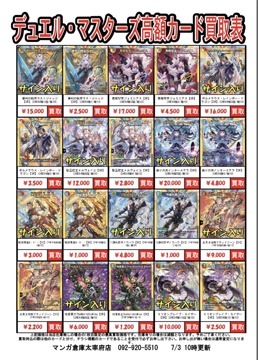 ■デュエルマスターズ、シングル買取告知更新しています!◆#デュエルマスターズ #デュエマ #シングル #買取 #マンガ倉庫太宰府店 #太宰府■ NEW カード 買取告知 2025年7月3日 デュエルマスターズ、シングル買取告知更新しています! 詳しくは店舗HPWEBチラシをご覧下さい! ※2025/7/3 現在の価格となります。 在庫状況などによってお値段が変動いたします。予めご了承ください。 ★店舗《Instagram / Twitter》フォローお願いします★ ★買取告知・イベント情報はこちら★ ★各部門の買取・入荷情報はこちら★ 共有: クリックして X で共有 (新しいウィンドウで開きます) X Facebook で共有するにはクリックしてください (新しいウィンドウで開きます) Facebook