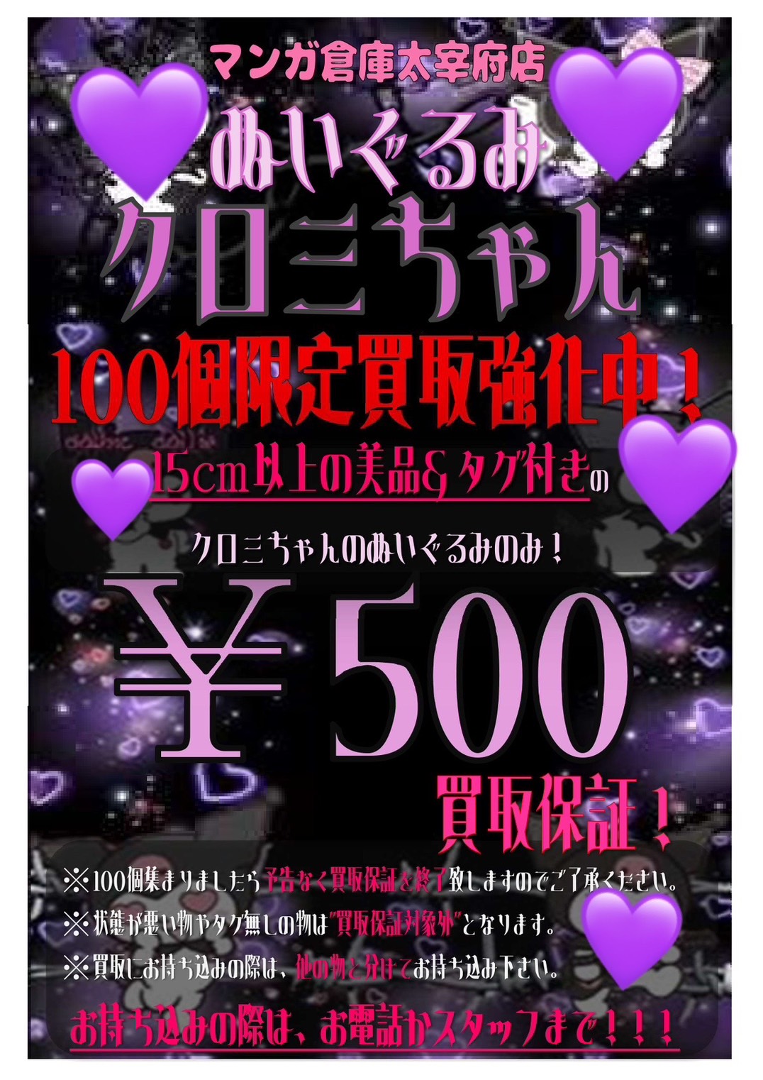 ■サンリオ クロミちゃんぬいぐるみ100個限定買取保証始めました💜◆ #サンリオ #クロミ #ぬいぐるみ #おもちゃ #マンガ倉庫太宰府店 #買取 #福岡 #太宰府■ NEW おもちゃ 買取告知 2025年7月11日 サンリオ クロミちゃんぬいぐるみ100個限定買取保証始めました💜 クロミちゃんぬいぐるみだけの買取保証になります‼️‼️ 100個限定になりますのでお早めにマンガ倉庫太宰府店へお持ち込み下さい✨️✨️ お持ち込みの際はお電話かスタッフまで‼️‼️ お待ちしております💜😈🖤 ★店舗《Instagram / Twitter》フォローお願いします★ ★買取告知・イベント情報はこちら★ ★各部門の買取・入荷情報はこちら★ 共有: クリックして X で共有 (新しいウィンドウで開きます) X Facebook で共有するにはクリックしてください (新しいウィンドウで開きます) Facebook