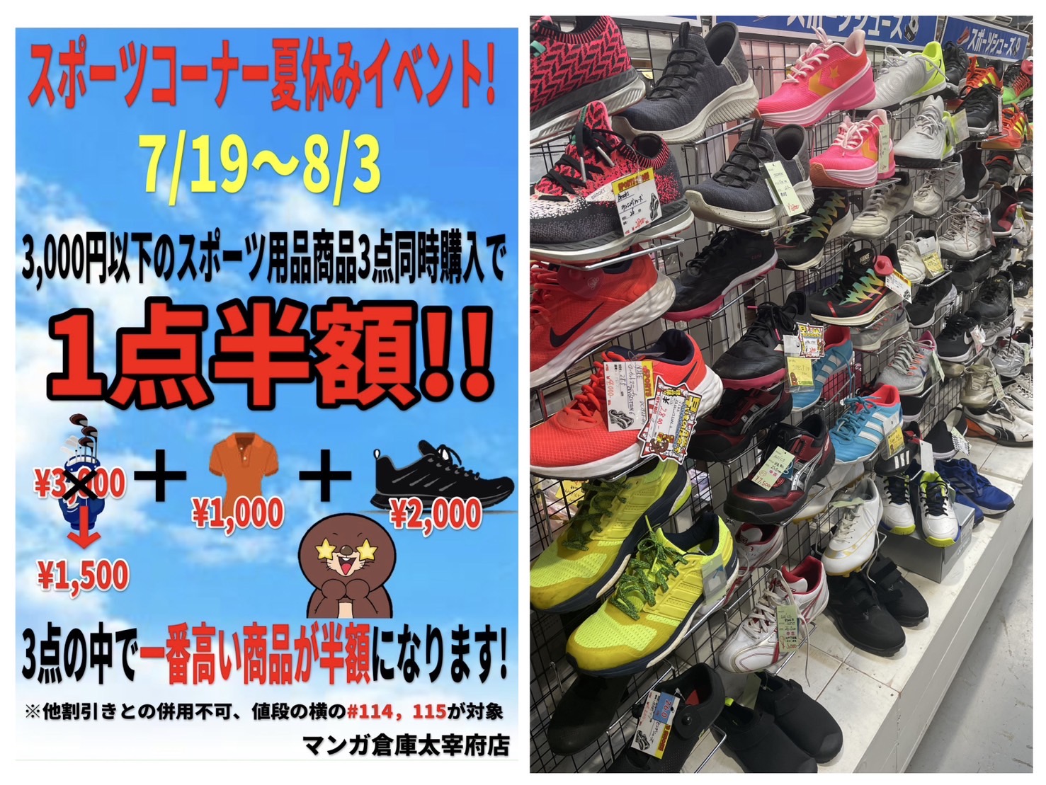 スポーツコーナー夏休みイベント!3,000円以下のスポーツ用品3点同時購入で1点半額!#スポーツ #ゴルフ #夏休み #イベント #セール #福岡 #太宰府 #マンガ倉庫太宰府店 NEW イベント情報! スポーツ 2025年7月24日 スポーツコーナー夏休みイベント まだまだやってます! 商品の追加もドンドンしています! 3,000円以下のスポーツ用品3点同時購入で1点半額! この機会にぜひマンガ倉庫太宰府店でお買い求めくださいませ! ★店舗《Instagram / Twitter》フォローお願いします★ ★買取告知・イベント情報はこちら★ ★各部門の買取・入荷情報はこちら★ 共有: クリックして X で共有 (新しいウィンドウで開きます) X Facebook で共有するにはクリックしてください (新しいウィンドウで開きます) Facebook