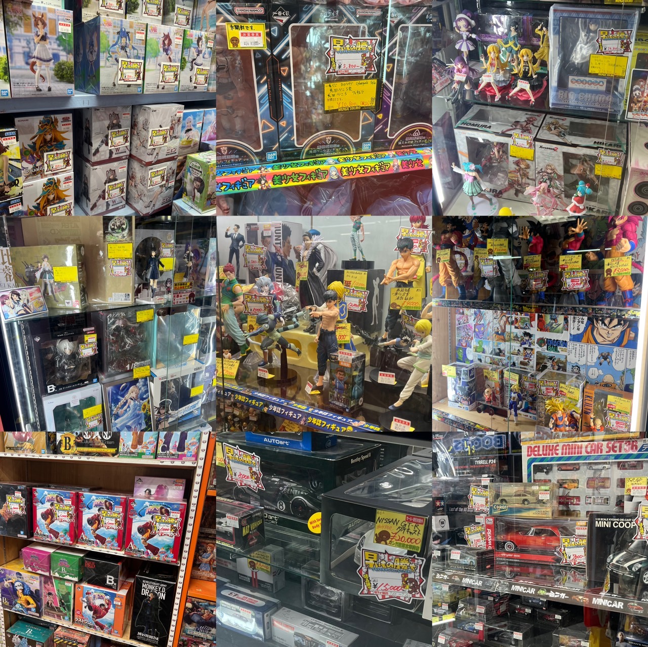 プライズフィギュアや一番くじ、メーカーフィギュア、ミニカー、おもちゃなどあらゆる所に早い者勝ちPOPが貼ってあります✨