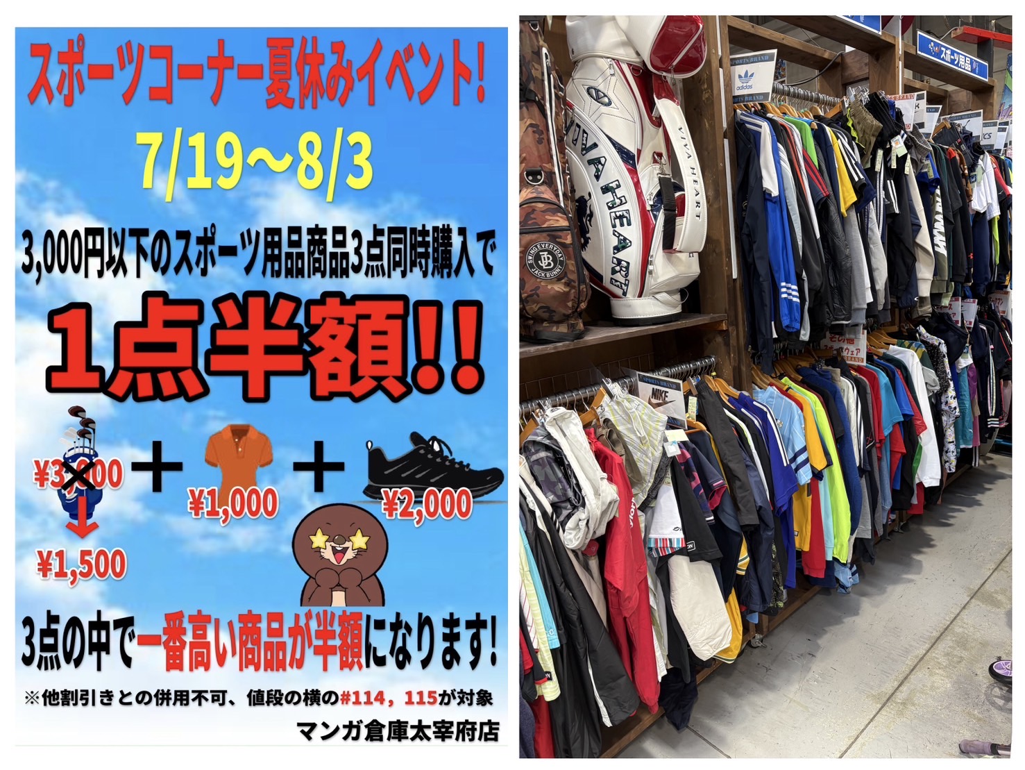 ■《8月3日まで》スポーツコーナー夏休みイベント まだまだやってます!◆#スポーツ #ゴルフ #夏休み #イベント #セール #福岡 #太宰府 #マンガ倉庫太宰府店■ イベント情報! スポーツ 2025年7月31日 スポーツコーナー夏休みイベント まだまだやってます! 3,000円以下のスポーツ用品3点同時購入で1点半額! スポーツ用品いいものからなくなっておりますがドンドン追加しております! この機会にぜひマンガ倉庫太宰府店でお買い求めくださいませ! ★店舗《Instagram / Twitter》フォローお願いします★ ★買取告知・イベント情報はこちら★ ★各部門の買取・入荷情報はこちら★ 共有: クリックして X で共有 (新しいウィンドウで開きます) X Facebook で共有するにはクリックしてください (新しいウィンドウで開きます) Facebook