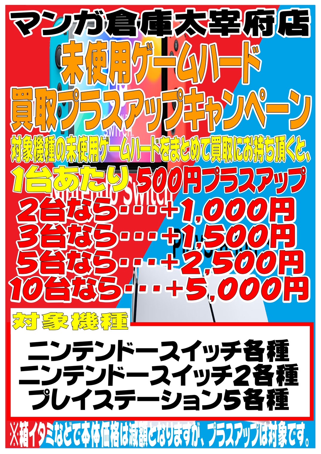 ゲームコーナーより未使用ゲームハードプラスアップのお知らせ‼