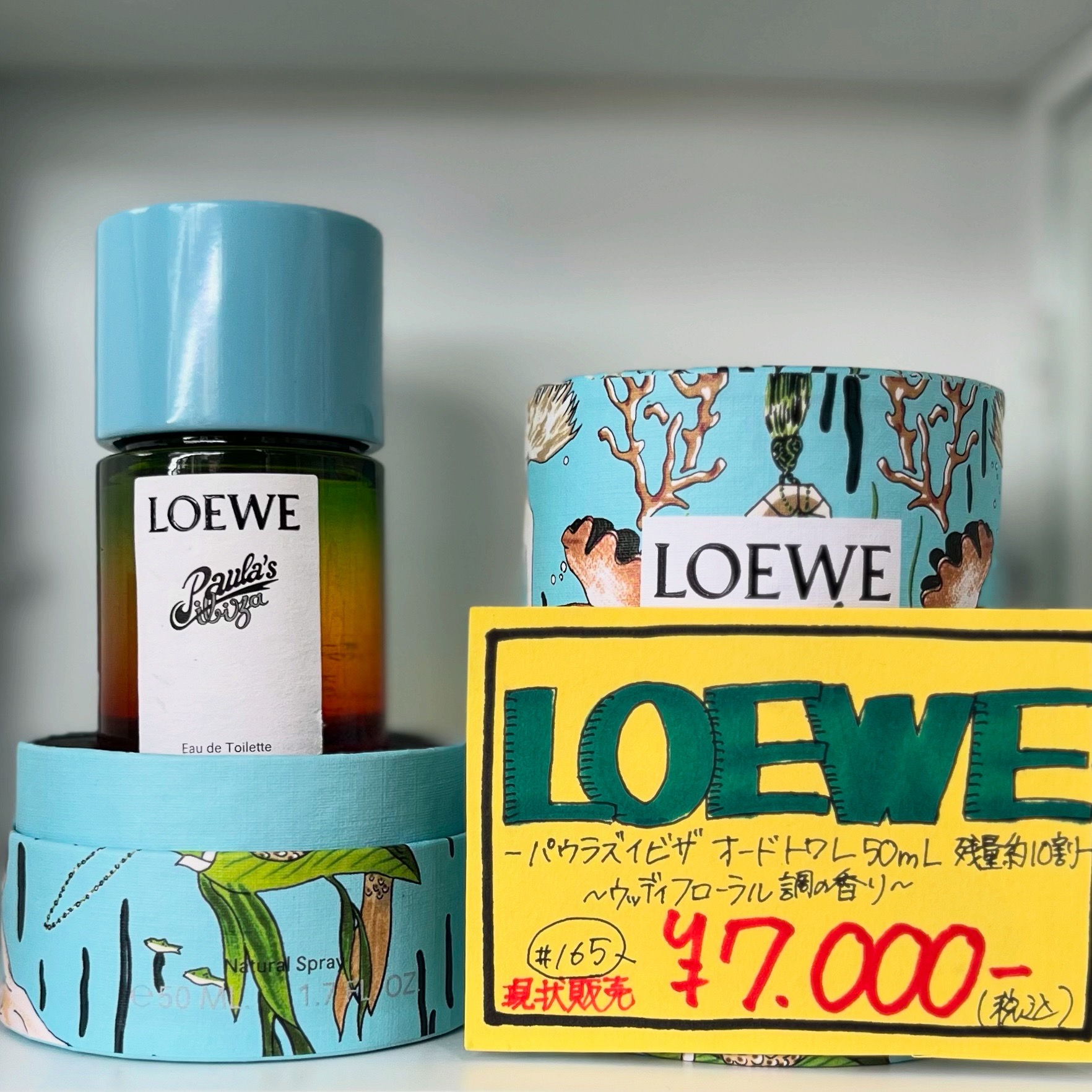古着館入口のSPプランドコーナーのローショーケースにLOEWEが仲間入りしました〜🩵