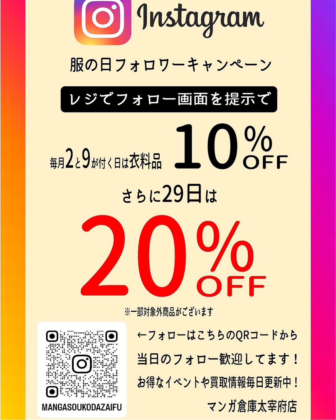 ★10/22はふくの日!インスタフォロワー様限定衣類品10%OFFセール!!★ #ファッション #古着 #古着屋 #買取 #福岡 #太宰府 #マンガ倉庫太宰府店 ファッション マンガ倉庫大宰府店 2025年10月22日 本日10/22はふくの日です! インスタフォロワー様限定衣類品10%OFFセール!! 秋冬アイテムもドンドン展開中! この機会に是非お買い求めくださいませ! ★店舗《Instagram / Twitter》フォローお願いします★ ★買取告知・イベント情報はこちら★ ★各部門の買取・入荷情報はこちら★ 共有: クリックして X で共有 (新しいウィンドウで開きます) X Facebook で共有するにはクリックしてください (新しいウィンドウで開きます) Facebook