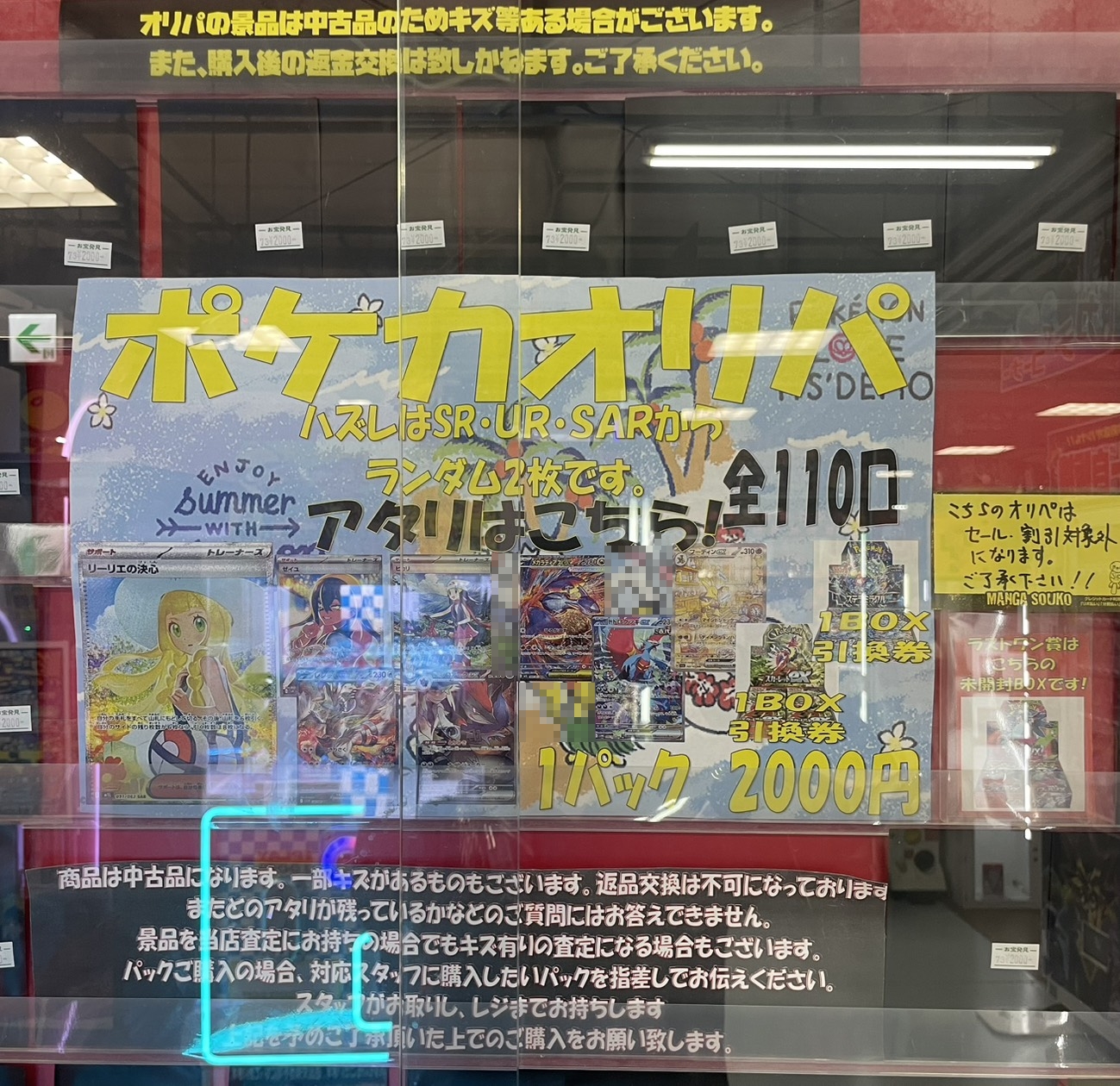 ■ポケカ 新しいオリパの販売を開始しています!■ #ポケモンカード #ポケカ #リーリエ #ゼイユ #インフェルノX #オリパ #マンガ倉庫太宰府店 #太宰府 カード マンガ倉庫大宰府店 2025年10月24日 ポケカの新しいオリパの販売を開始しています! 今回の当たりはSARリーリエの決心やSARゼイユ、SARレシラムexなど人気カードを投入しています! 未開封BOXも投入!そしてラストワンには最新弾のインフェルノX未開封BOXを用意しました! 早めに売り切れてしまうかも? 是非お早めにマンガ倉庫太宰府店までお越し下さい! ★店舗《Instagram / Twitter》フォローお願いします★ ★買取告知・イベント情報はこちら★ ★各部門の買取・入荷情報はこちら★ 共有: クリックして X で共有 (新しいウィンドウで開きます) X Facebook で共有するにはクリックしてください (新しいウィンドウで開きます) Facebook