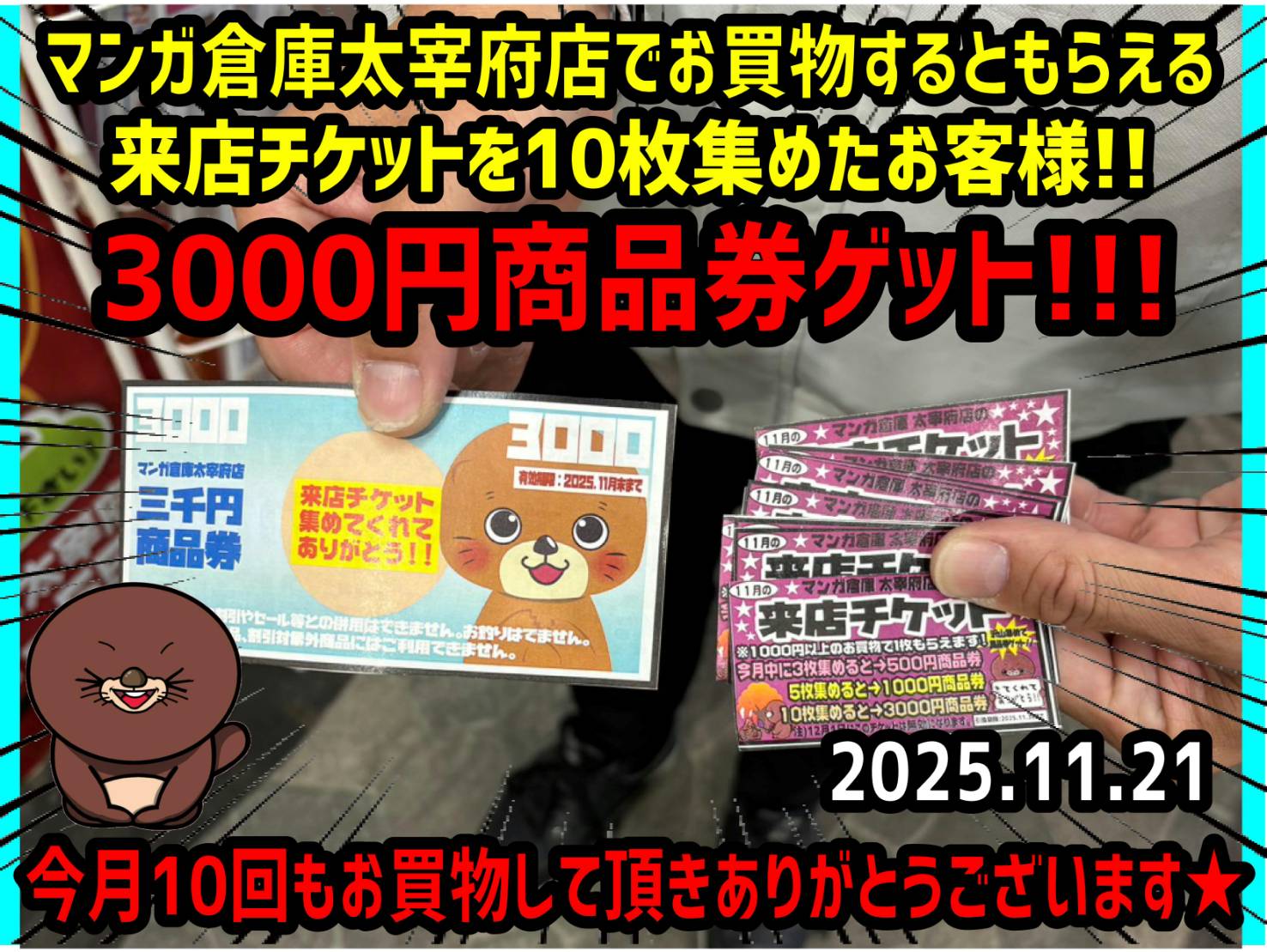 ■今月も10回来店して3000円商品券をゲットするお客様が続出中!!■ #マンガ倉庫太宰府店 #来店チケット #商品券 #福岡 #太宰府 #イベント イベント情報! 2025年11月21日 今月も10回来店して3000円商品券をゲットするお客様が続出中!! 来るほどオトクなマンガ倉庫太宰府店にアナタもぜひご来店を★ ★店舗《Instagram / Twitter》フォローお願いします★ ★買取告知・イベント情報はこちら★ ★各部門の買取・入荷情報はこちら★ 共有: クリックして X で共有 (新しいウィンドウで開きます) X Facebook で共有するにはクリックしてください (新しいウィンドウで開きます) Facebook