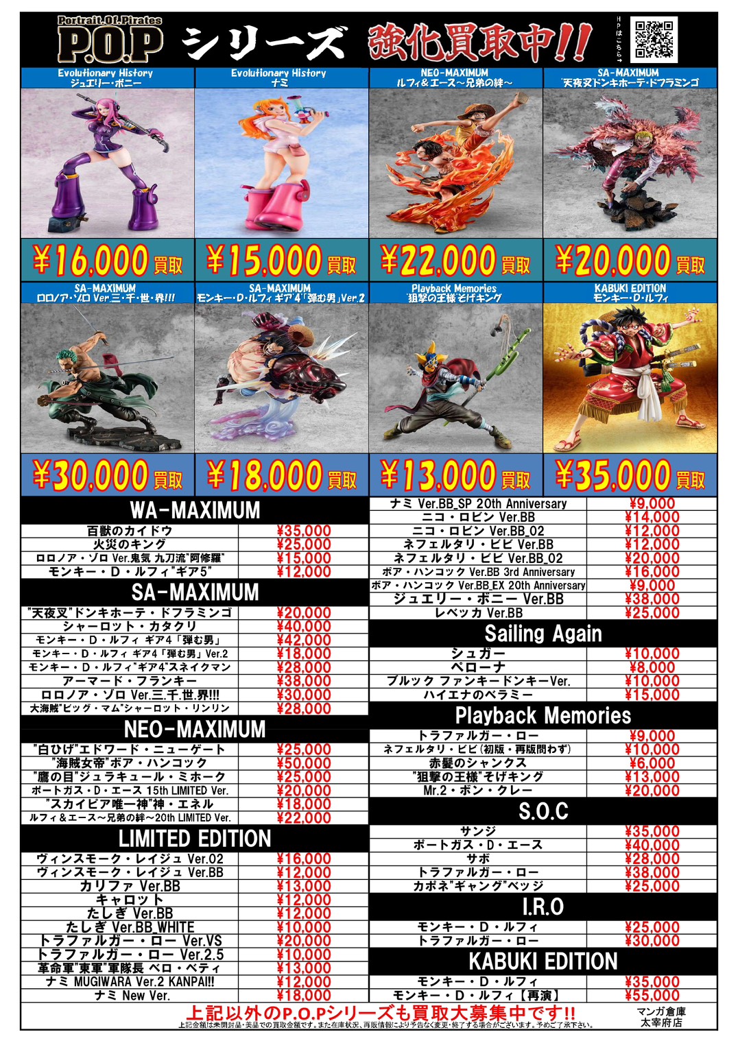 ワンピース P.O.Pシリーズ買取告知更新致しました✨️✨️ #POP_MH #ワンピース #ONEPIECE #ワンピースフィギュア #おもちゃ #マンガ倉庫太宰府店 #買取 #福岡 #太宰府 おもちゃ 買取告知 2025年12月4日 ワンピース P.O.Pシリーズ買取告知更新致しました✨️✨️ 掲載外の物や新作のP.O.Pシリーズも強化買取中です🔥 是非マンガ倉庫太宰府店へお持ち込み下さいませ😊 ※2025/12/4 現在の価格となります。 在庫状況・状態によってお値段が変動いたします。予めご了承ください。 ★店舗《Instagram / Twitter》フォローお願いします★ ★買取告知・イベント情報はこちら★ ★各部門の買取・入荷情報はこちら★ 共有: クリックして X で共有 (新しいウィンドウで開きます) X Facebook で共有するにはクリックしてください (新しいウィンドウで開きます) Facebook