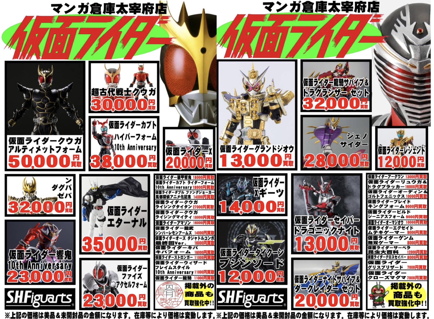仮面ライダー S.H.Figuarts、真骨彫製法シリーズ絶賛買取強化中です🔥 #仮面ライダー #t_shf #真骨彫製法 #フィギュア #おもちゃ #マンガ倉庫太宰府店 #買取 #福岡 #太宰府 おもちゃ 買取告知 2025年12月4日 仮面ライダー S.H.Figuarts、真骨彫製法シリーズ絶賛買取強化中です🔥 チラシは未開封品の金額になりますが、開封品や掲載外の物ももちろん買取致します✨️✨️ 是非マンガ倉庫太宰府店へお持ち込み下さいませ😊 ※2025/12/4 現在の価格となります。 在庫状況・状態によってお値段が変動いたします。予めご了承ください。 ★店舗《Instagram / Twitter》フォローお願いします★ ★買取告知・イベント情報はこちら★ ★各部門の買取・入荷情報はこちら★ 共有: クリックして X で共有 (新しいウィンドウで開きます) X Facebook で共有するにはクリックしてください (新しいウィンドウで開きます) Facebook