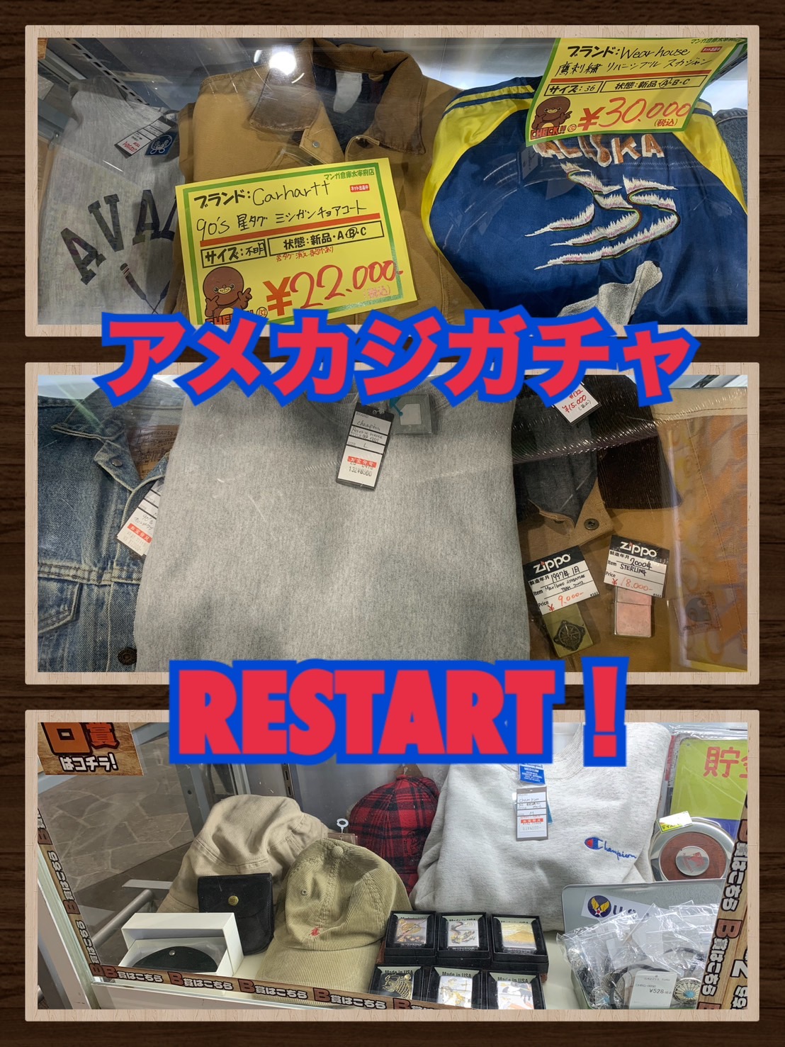 中止になっておりました、大好評”アメカジガチャ”、稼働再開致しました💪✨ #アメカジ #ガチャ #ファッション #古着 #福岡 #太宰府 #マンガ倉庫太宰府店 ガチャ ファッション 2025年12月17日 古着よりお知らせです!! 中止になっておりました、大好評”アメカジガチャ”、稼働再開致しました💪✨ 今回はS賞に✨WAREHOUSE ALASKA リバーシブルスカジャン✨、 A賞には✨Carhartt パッチワークジャケット✨や、✨STERLING ZIPPO✨など豪華景品を投入しております!! 是非ご挑戦下さい!! ★店舗《Instagram / Twitter》フォローお願いします★ ★買取告知・イベント情報はこちら★ ★各部門の買取・入荷情報はこちら★ 共有: クリックして X で共有 (新しいウィンドウで開きます) X Facebook で共有するにはクリックしてください (新しいウィンドウで開きます) Facebook