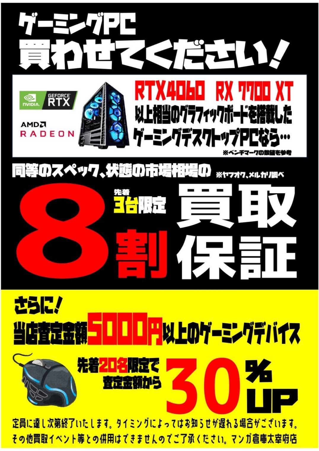 以上相当のグラフィックボードを搭載したゲーミングデスクトップPCなら同等のスペック、状態の市場相場の
