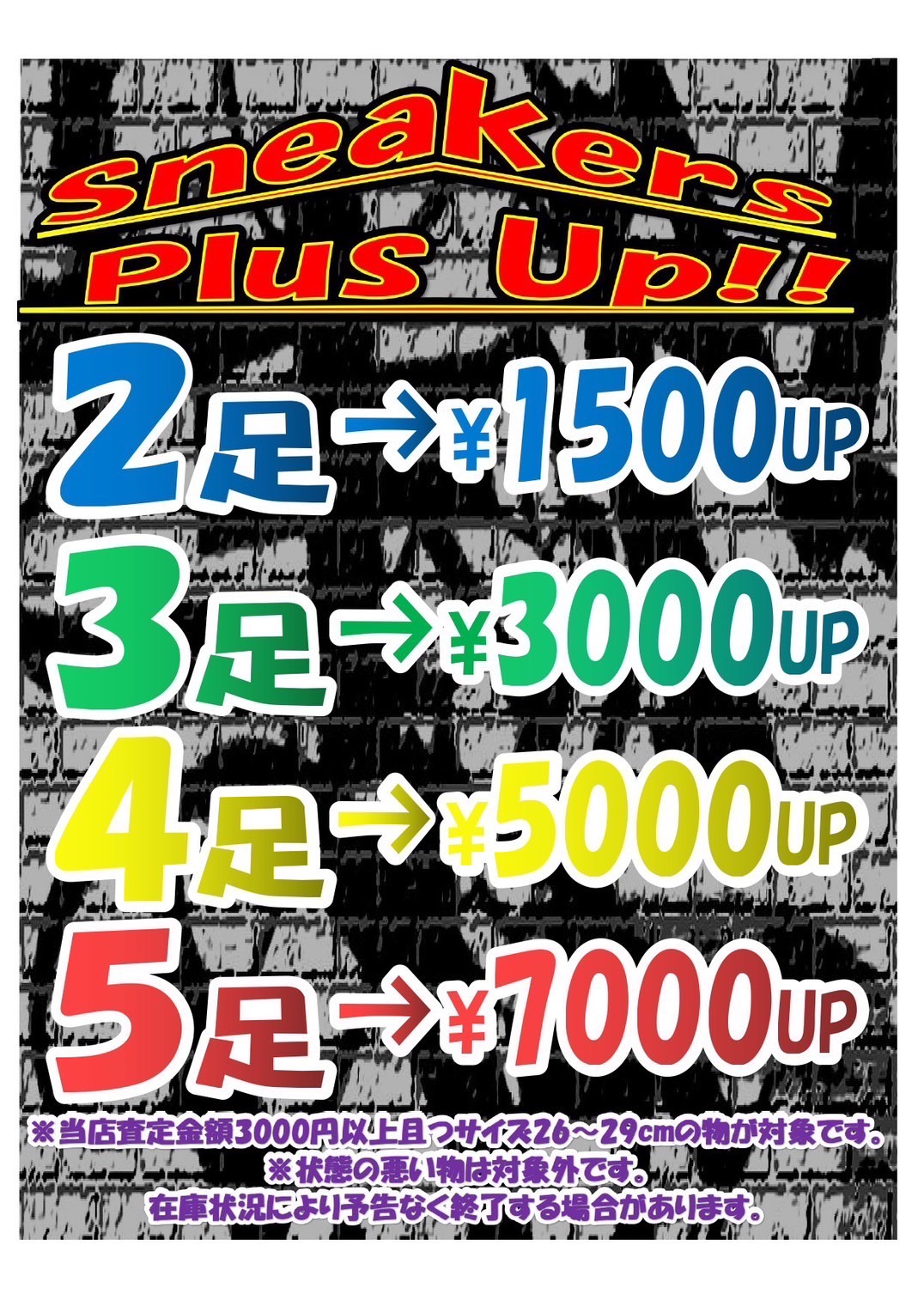 当店査定金額が3000円以上且つサイズ26〜29cmが対象となります!