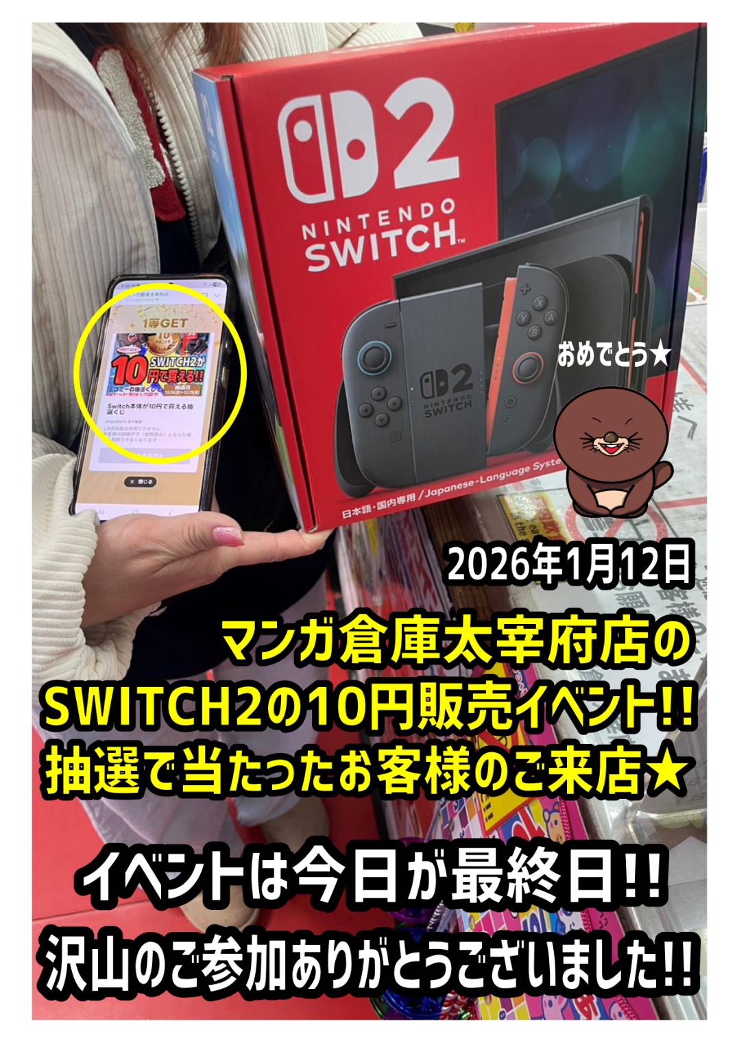 ■SWITCH2の10円販売イベント最後の当選者が御来店されました★#SWITCH2 #10円販売 #LINE #ミコミー #マンガ倉庫太宰府店 #福岡 #太宰府■ イベント情報! 2026年1月12日 SWITCH2の10円販売イベント最後の当選者が御来店されました★ おめでとうございます! イベントは本日最終日。 またすぐにおもろいイベントやるので マンガ倉庫太宰府店のTikTok 、インスタ、Xなど常にチェックを忘れずに!! 沢山のご参加ありがとうございました!! ★店舗《Instagram / Twitter》フォローお願いします★ ★買取告知・イベント情報はこちら★ ★各部門の買取・入荷情報はこちら★ 共有: クリックして X で共有 (新しいウィンドウで開きます) X Facebook で共有するにはクリックしてください (新しいウィンドウで開きます) Facebook