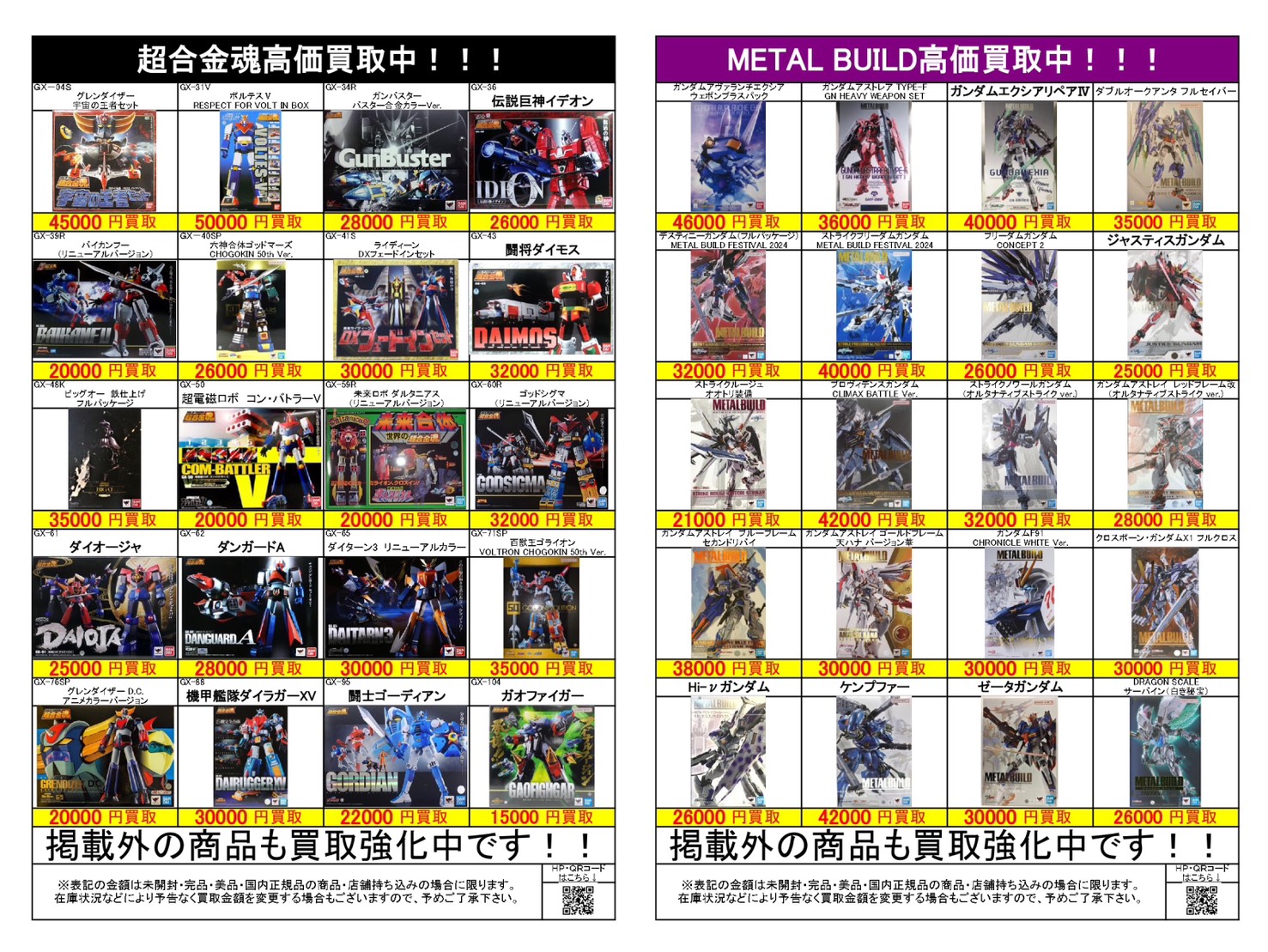METAL BUILD,超合金魂買取告知更新しました!#METALBUILD #超合金魂 #おもちゃ #ロボット #買取 #福岡 #太宰府 #マンガ倉庫太宰府店 おもちゃ 買取告知 2026年1月20日 METAL BUILD,超合金魂買取告知更新しました! もちろん記載のアイテム以外も買取強化中です! おもちゃの買取はマンガ倉庫太宰府店! ※2026/1/20現在の価格となっております。 相場、在庫状況により告知なく価格が変更となる場合がございますのでご了承ください。 ★店舗《Instagram / Twitter》フォローお願いします★ ★買取告知・イベント情報はこちら★ ★各部門の買取・入荷情報はこちら★ 共有: クリックして X で共有 (新しいウィンドウで開きます) X Facebook で共有するにはクリックしてください (新しいウィンドウで開きます) Facebook