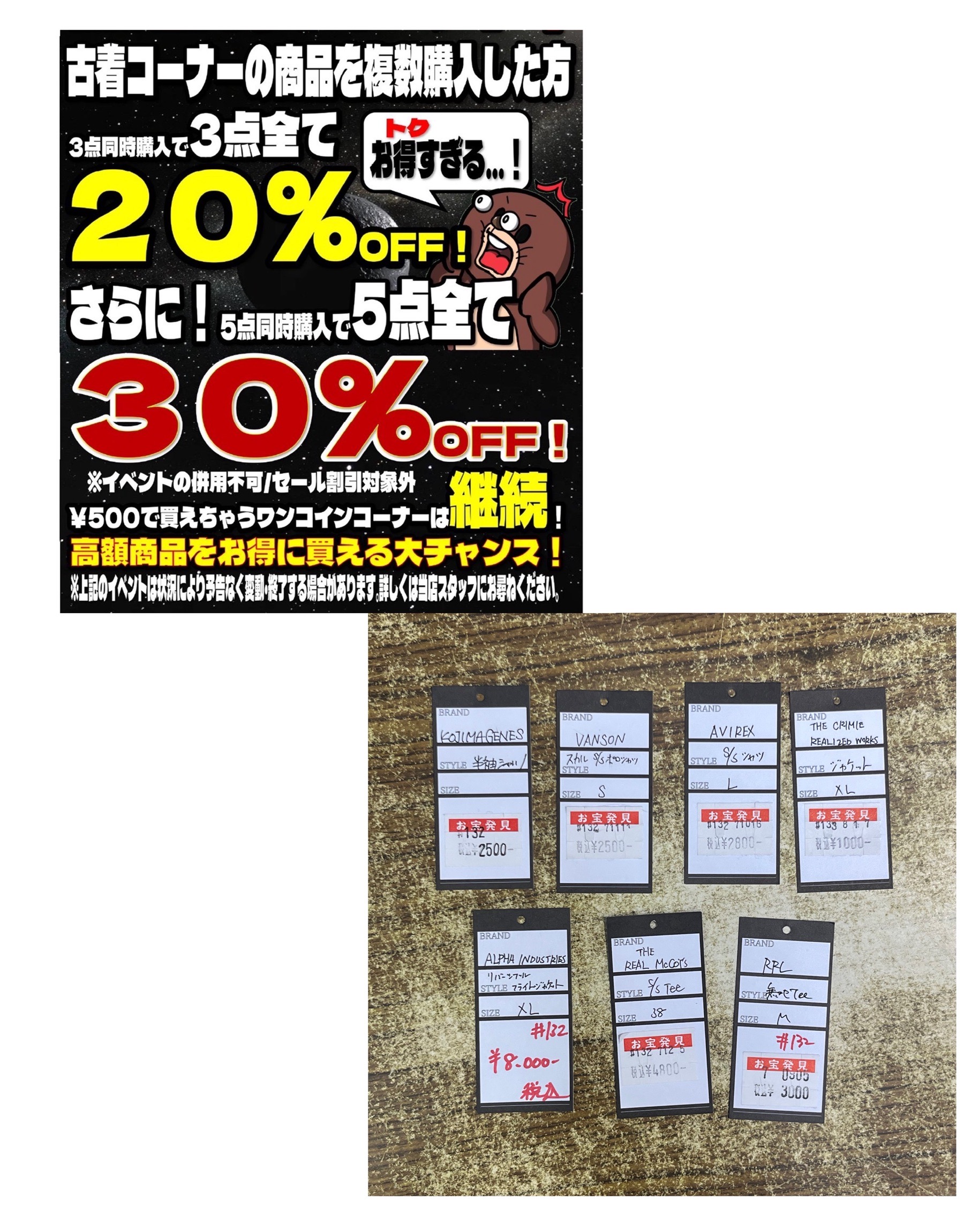 ■古着コーナー よりお知らせです!◆#マンガ倉庫太宰府店 #セール #sales #爆買い #大量買い #まとめ買い #イベント #開催中 #fashion #ファッション #古着屋 #古着 #買取 #太宰府■ イベント情報! ファッション 2026年1月29日 古着コーナー よりお知らせです! 本日も爆買いありがとうございます! 本当に複数買えば買うほどお得になるんです! 高くて買うのを迷ってた方!このイベントがあるうちにどうでしょうか! まだまだ爆買いお待ちしてます!! ※2026/1/29 現在の価格となります。 在庫状況などによってお値段が変動いたします。予めご了承ください。 ★店舗《Instagram / Twitter》フォローお願いします★ ★買取告知・イベント情報はこちら★ ★各部門の買取・入荷情報はこちら★ 共有: クリックして X で共有 (新しいウィンドウで開きます) X Facebook で共有するにはクリックしてください (新しいウィンドウで開きます) Facebook