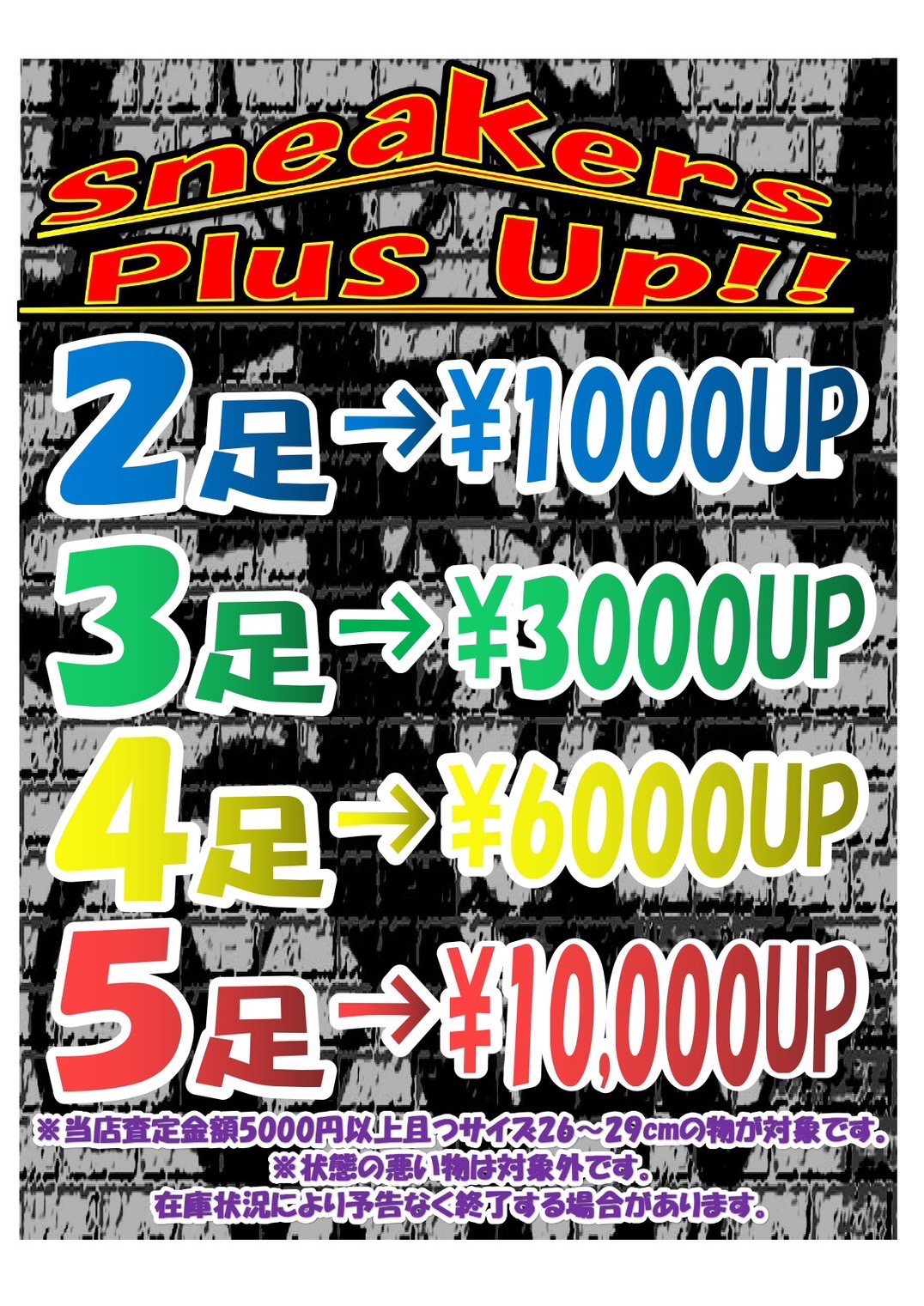 現在実施中のスニーカープラスアップ、価格変更しパワーアップしました💪✨