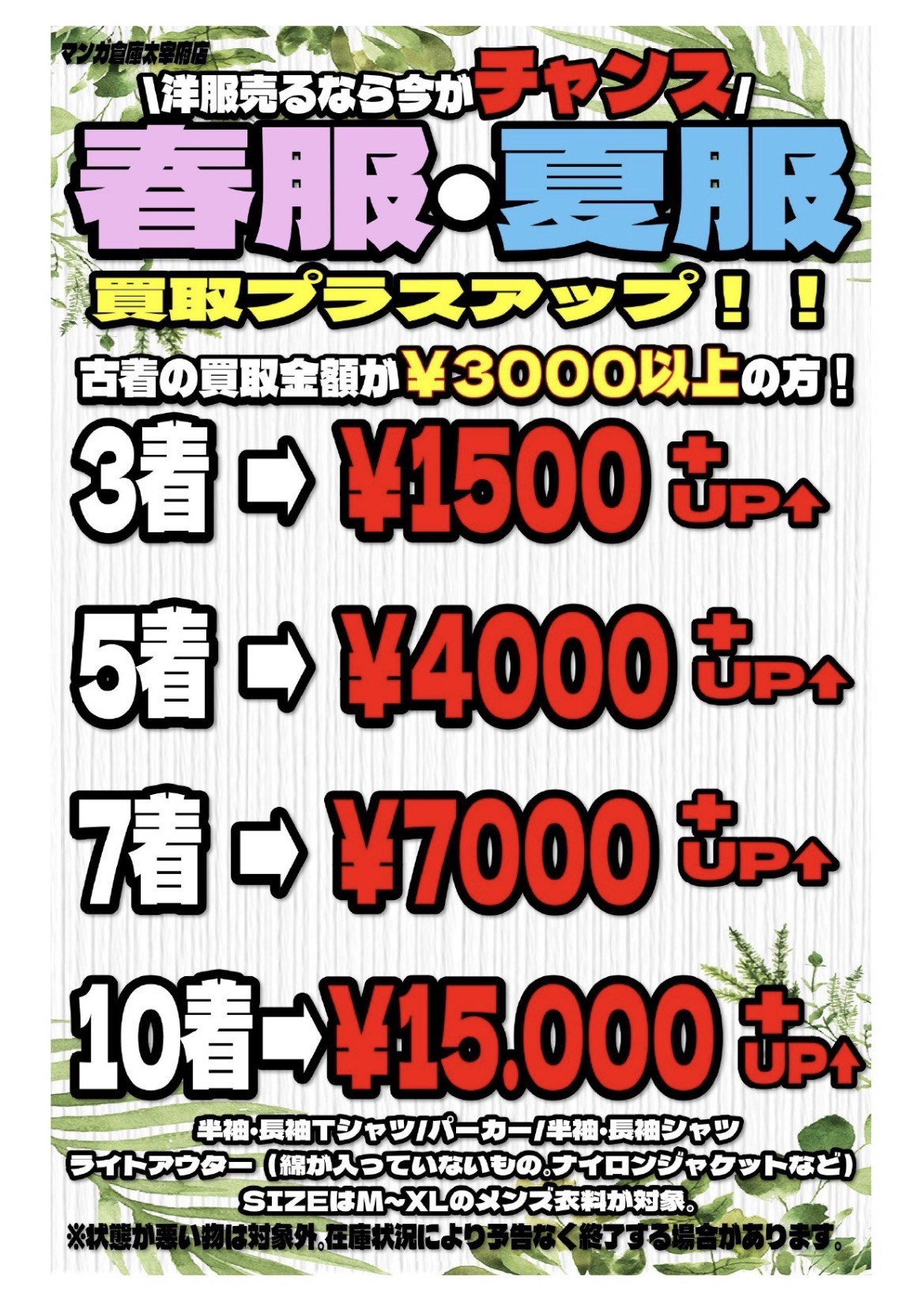 古着の買取金額が3000円以上の方に!記載の金額でプラスアップをお付けします!