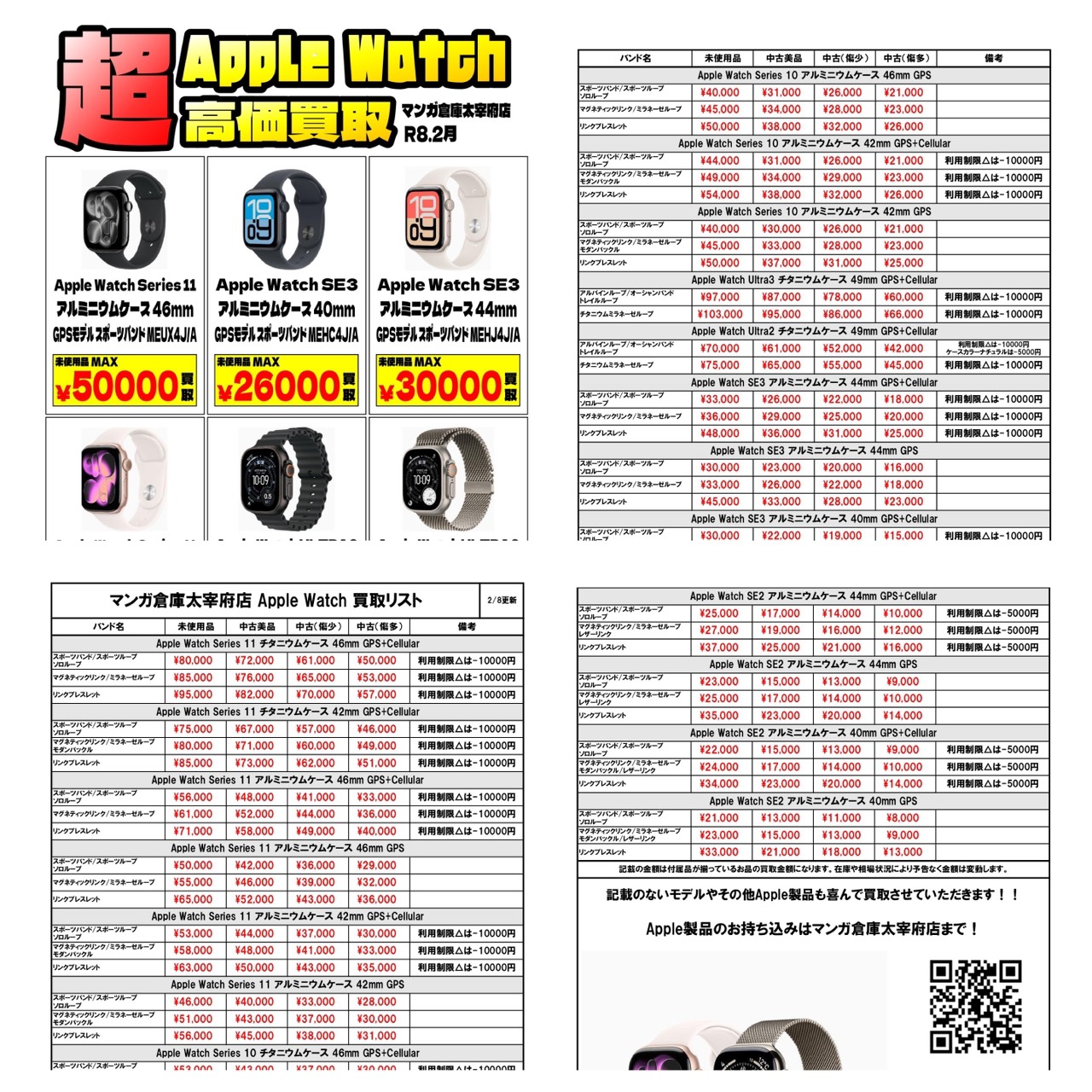 Apple Watch買取告知更新しました!#Apple #AppleWatch #買取 #福岡 #マンガ倉庫太宰府店 家電/雑貨 買取告知 2026年2月8日 Apple Watch買取告知更新しました! Apple製品買取超強化中です! ぜひマンガ倉庫太宰府店までお持ち込みください! ※2026/2/7〇現在の価格となっております。 相場、在庫状況により告知なく価格が変更となる場合がございますのでご了承ください。 ★店舗《Instagram / Twitter》フォローお願いします★ ★買取告知・イベント情報はこちら★ ★各部門の買取・入荷情報はこちら★ 共有: X で共有 (新しいウィンドウで開きます) X Facebook で共有 (新しいウィンドウで開きます) Facebook