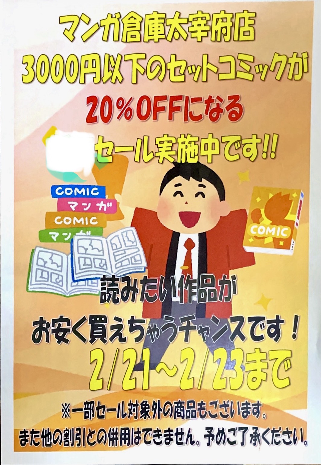 ☆★3連休限定セール! 3000円以下のセットコミックが20%OFFで買えちゃいます!★☆ #コミック #セットコミック #セール #マンガ倉庫太宰府店 #太宰府 イベント情報! コミック/書籍 2026年2月21日 3連休限定セール! 3000円以下のセットコミックが20%OFFで買えちゃいます! まとめ読みしたかった作品をお得に買えるチャンスです! 3連休は是非マンガ倉庫太宰府店までお越し下さい!! ★店舗《Instagram / Twitter》フォローお願いします★ ★買取告知・イベント情報はこちら★ ★各部門の買取・入荷情報はこちら★ 共有: X で共有 (新しいウィンドウで開きます) X Facebook で共有 (新しいウィンドウで開きます) Facebook