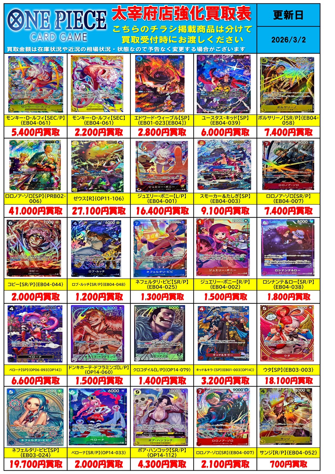 ワンピースカード 買取告知更新しました ‼️👒