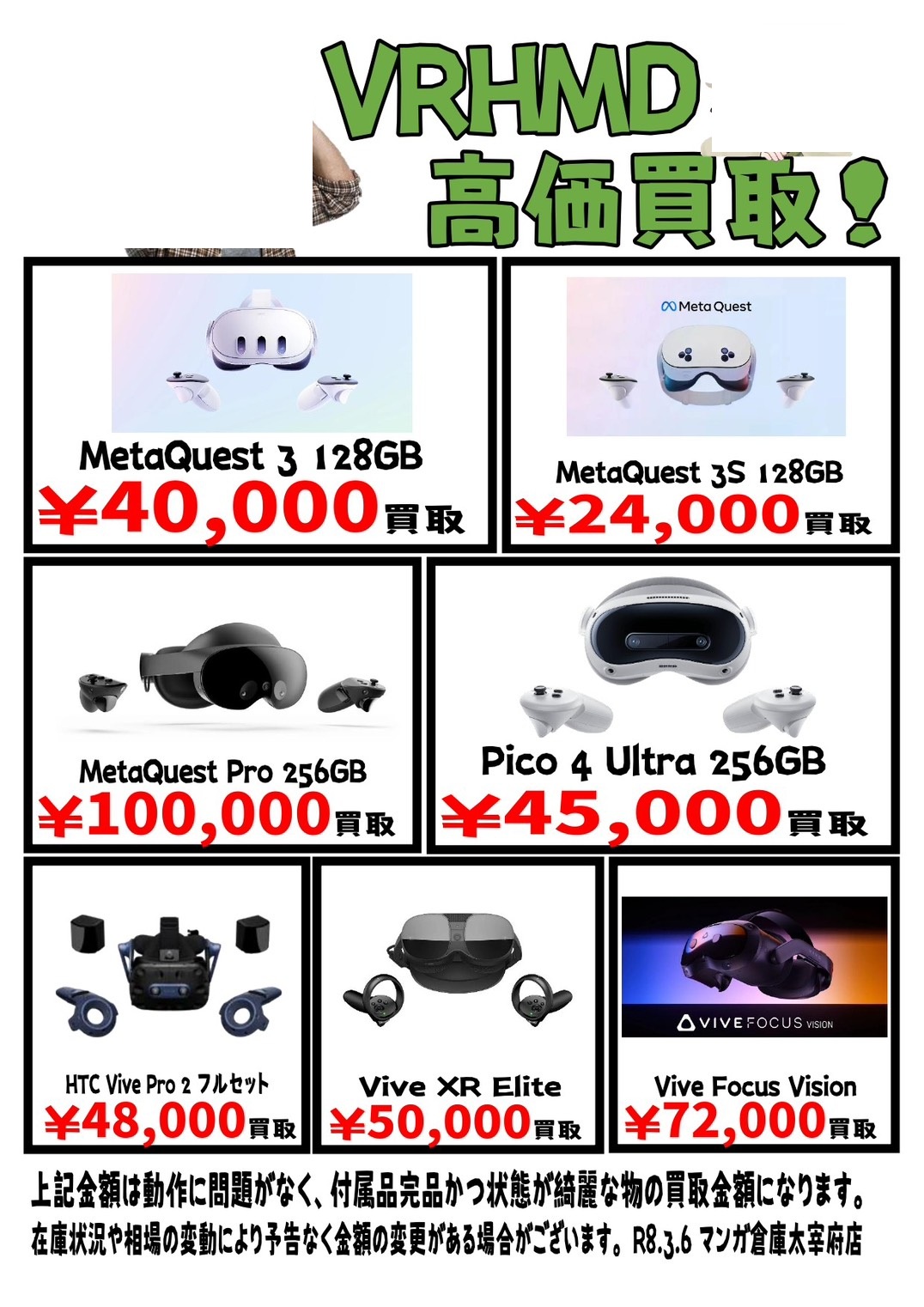 VRHMD買取告知更新!#VR #ゲーミング #買取 #福岡 #マンガ倉庫太宰府店 家電/雑貨 買取告知 2026年3月6日 VRHMD買取告知更新! ゲーミングデバイス買取超強化中! 記載外のアイテムももちろん買取させていただきます! ぜひマンガ倉庫太宰府店までお持ち込みください! ★店舗《Instagram / Twitter》フォローお願いします★ ★買取告知・イベント情報はこちら★ ★各部門の買取・入荷情報はこちら★ 共有: X で共有 (新しいウィンドウで開きます) X Facebook で共有 (新しいウィンドウで開きます) Facebook