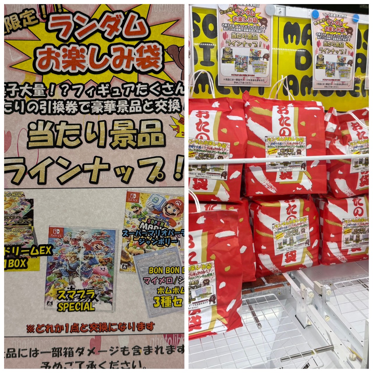 お楽しみ袋キャッチャー稼働中です! アミューズ 2026年3月20日 お楽しみ袋キャッチャー稼働中です! 今回の当たりも豪華景品となってます! 🍀… ○ポケカ MEGAドリームEX1BOX 〇スマフラSPECIAL 〇スーパーマリオパーティジャンボリー 〇BON BON DROP miniマイメロ/シナモロール ポムポムプリン3種セット 🍀… 3連休は #マンガ倉庫大宰府店 で #クレゲ しよう☺️ ★店舗《Instagram / Twitter》フォローお願いします★ ★買取告知・イベント情報はこちら★ ★各部門の買取・入荷情報はこちら★ 共有: X で共有 (新しいウィンドウで開きます) X Facebook で共有 (新しいウィンドウで開きます) Facebook