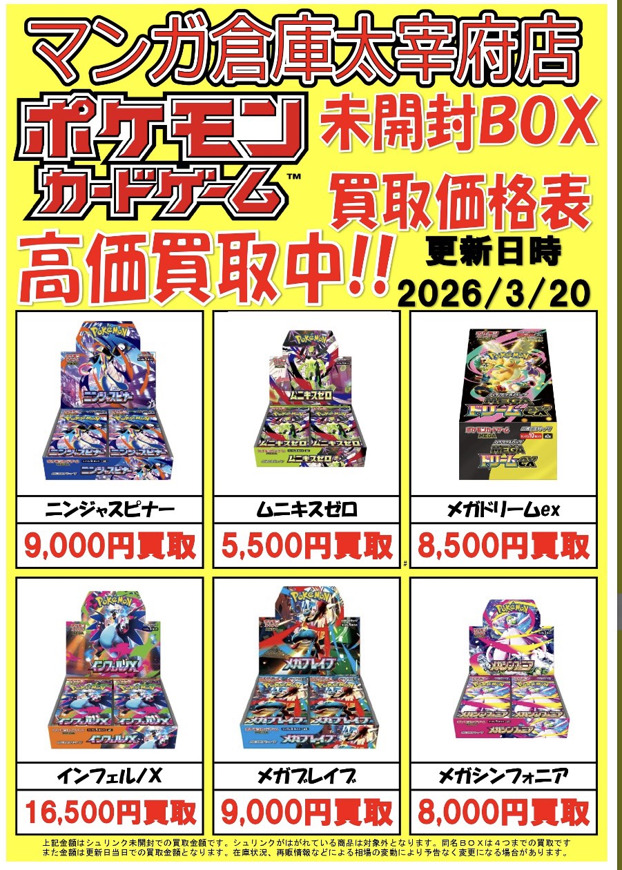 ポケモンカードの未開封BOXの買取価格を更新しました!詳しくは店舗HPWEBチラシをご覧下さい!たくさんのお持ち込みお待ちしております!
