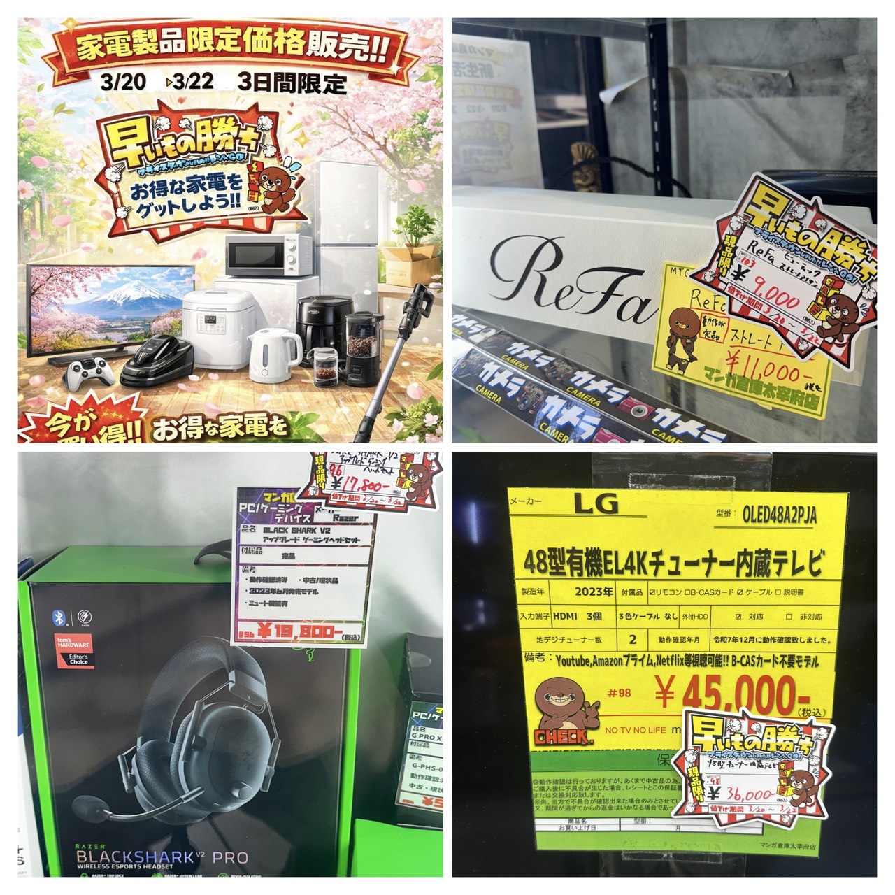マンガ倉庫太宰府店家電コーナー新生活応援!! 家電製品限定価格販売開催中!#マンガ倉庫太宰府店 #家電 #3連休 #限定価格 #福岡 #太宰府 家電/雑貨 2026年3月21日 マンガ倉庫太宰府店家電コーナー新生活応援!! 家電製品限定価格販売開催中! テレビやイヤホン、生活家電などを3連休限定価格で展開中です! 良いものから無くなるので、ぜひお早めに! ★店舗《Instagram / Twitter》フォローお願いします★ ★買取告知・イベント情報はこちら★ ★各部門の買取・入荷情報はこちら★ 共有: X で共有 (新しいウィンドウで開きます) X Facebook で共有 (新しいウィンドウで開きます) Facebook