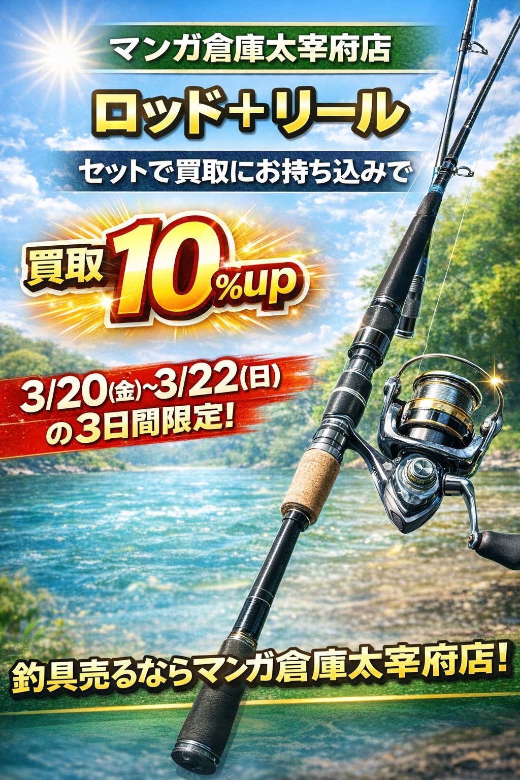 釣具コーナー3連休イベント開催中! ロッドとリールをセットでお持ち込みいただくと買取10%up!#釣具 #買取 #福岡 #太宰府 #マンガ倉庫太宰府店 NEW イベント情報! 釣具 2026年3月21日 釣具コーナー3連休イベント開催中! ロッドとリールをセットでお持ち込みいただくと買取10%up! 3/20~3/22の3日間限定です! ぜひこの機会にお持ち込みください! ★店舗《Instagram / Twitter》フォローお願いします★ ★買取告知・イベント情報はこちら★ ★各部門の買取・入荷情報はこちら★ 共有: X で共有 (新しいウィンドウで開きます) X Facebook で共有 (新しいウィンドウで開きます) Facebook