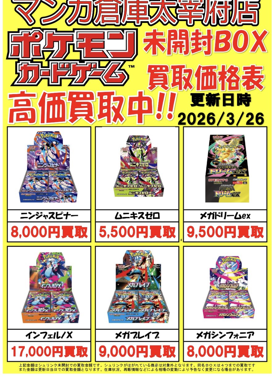ポケモンカードの未開封BOXの買取価格を更新しました!詳しくは店舗HPWEBチラシをご覧下さい!たくさんのお持ち込みお待ちしております!