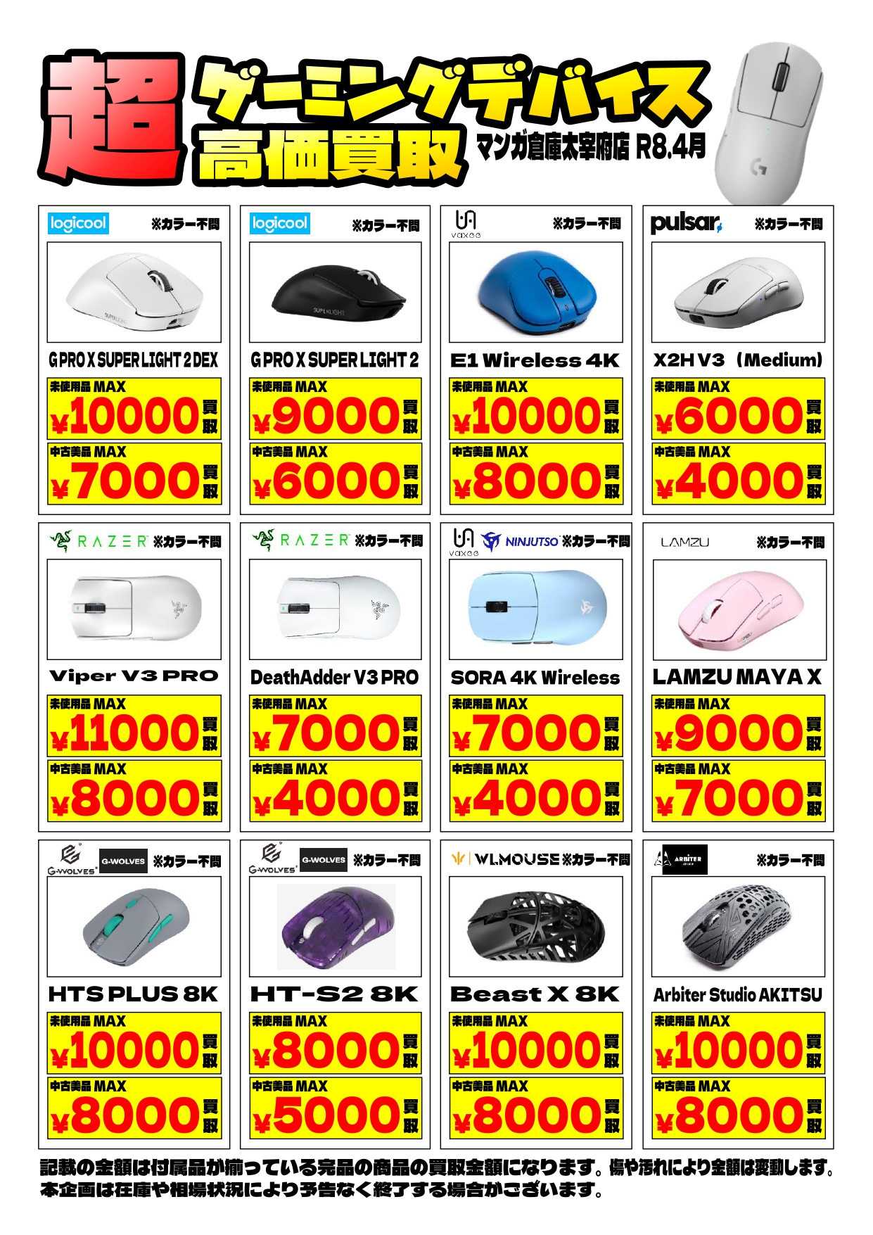 ■ゲーミングマウス買取強化中!■ #ゲーミング #マウス #買取 #福岡 #マンガ倉庫太宰府店 家電/雑貨 買取告知 2026年4月10日 ゲーミングマウス買取強化中! マンガ倉庫太宰府店は ゲーミングマウスやキーボード、ヘッドセットなどゲーミングデバイス超買取強化中! ぜひお持ち込みはマンガ倉庫太宰府店へ! ★店舗《Instagram / Twitter》フォローお願いします★ ★買取告知・イベント情報はこちら★ ★各部門の買取・入荷情報はこちら★ 共有: X で共有 (新しいウィンドウで開きます) X Facebook で共有 (新しいウィンドウで開きます) Facebook
