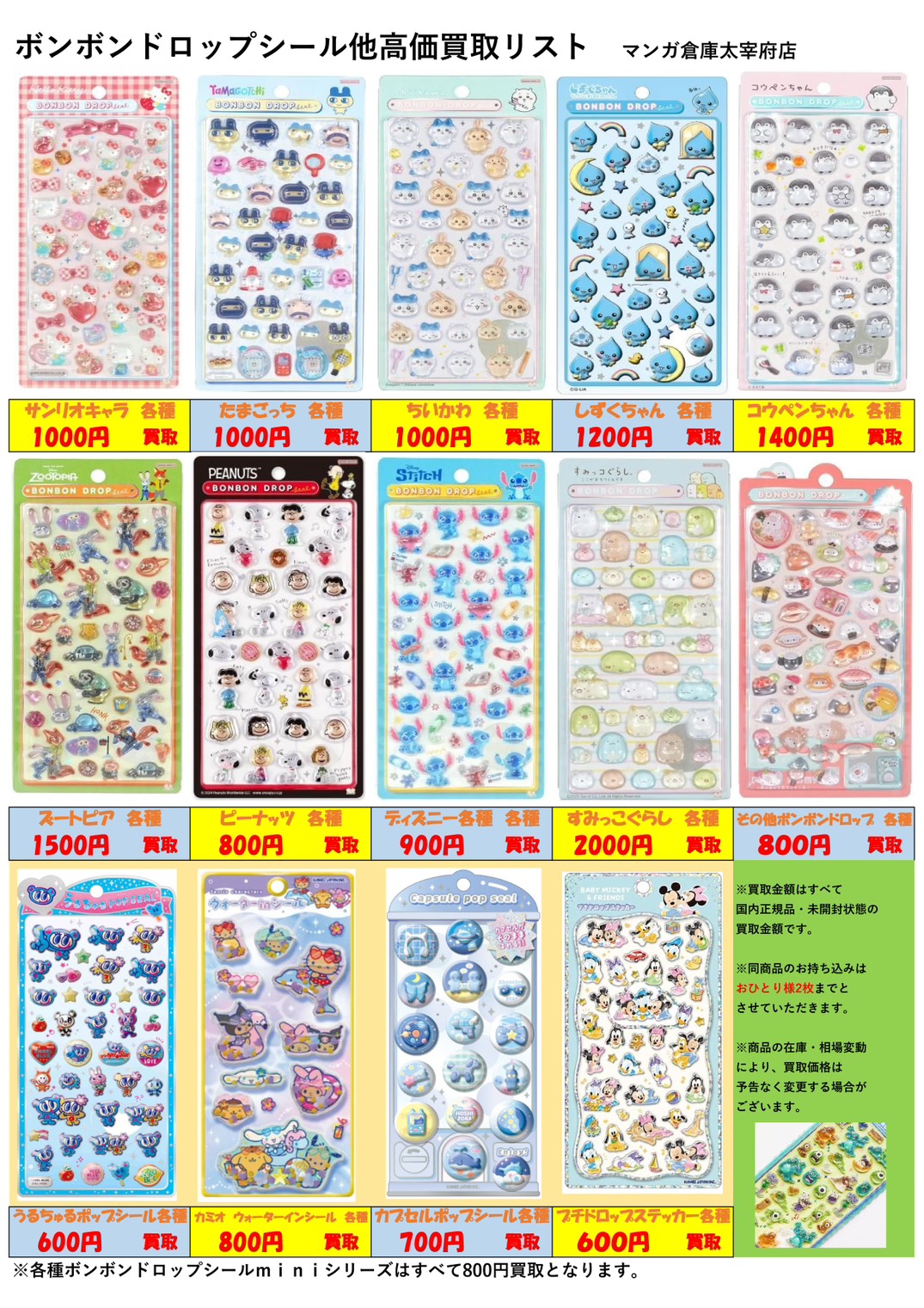 ボンボンドロップシールやうるちゅるポップシールなど買取保証始めました。