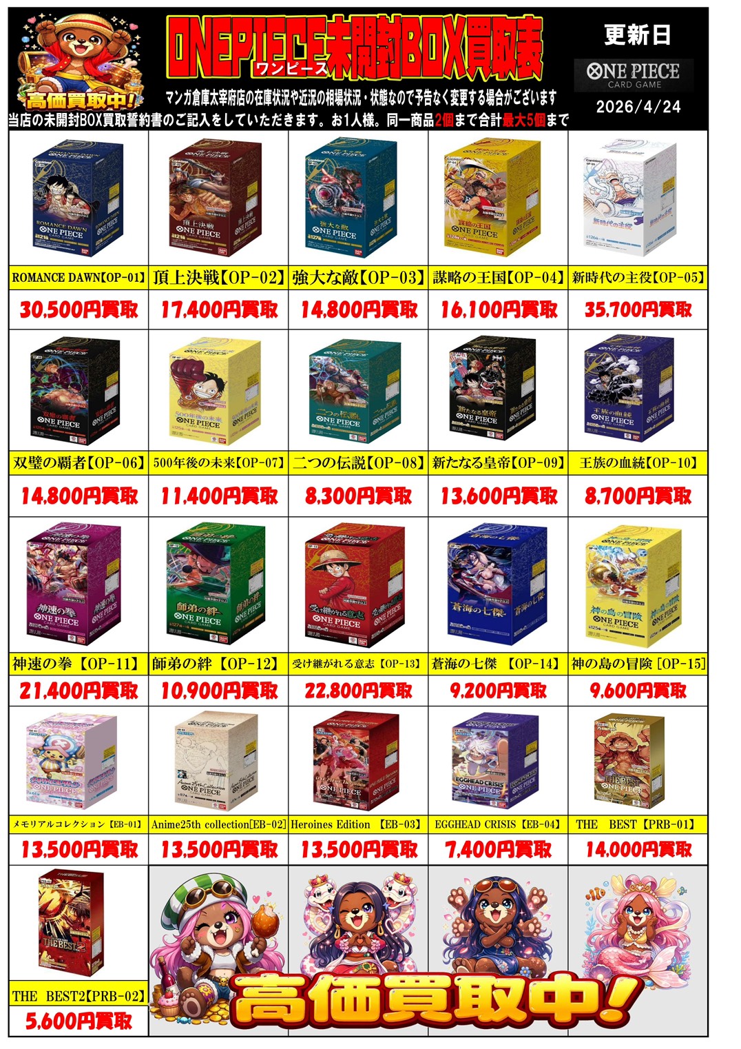 ワンピース 〝 未開封BOX買取告知 〟更新しました〜〜!