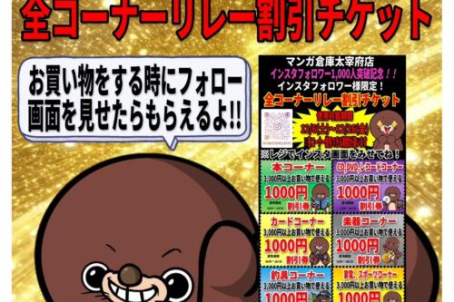 ■インスタフォロワー様1,000人突破記念!マンガ倉庫太宰府店インスタフォロワー様限定の全コーナーで使える割引チケット配布中!■ #マンガ倉庫太宰府店 #インスタ #イベント #セール #福岡 #太宰府