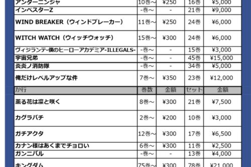 ■コミック・セットコミックの買取価格表を更新致しました!◆#コミック #セットコミック #買取 #マンガ倉庫太宰府店 #太宰府■