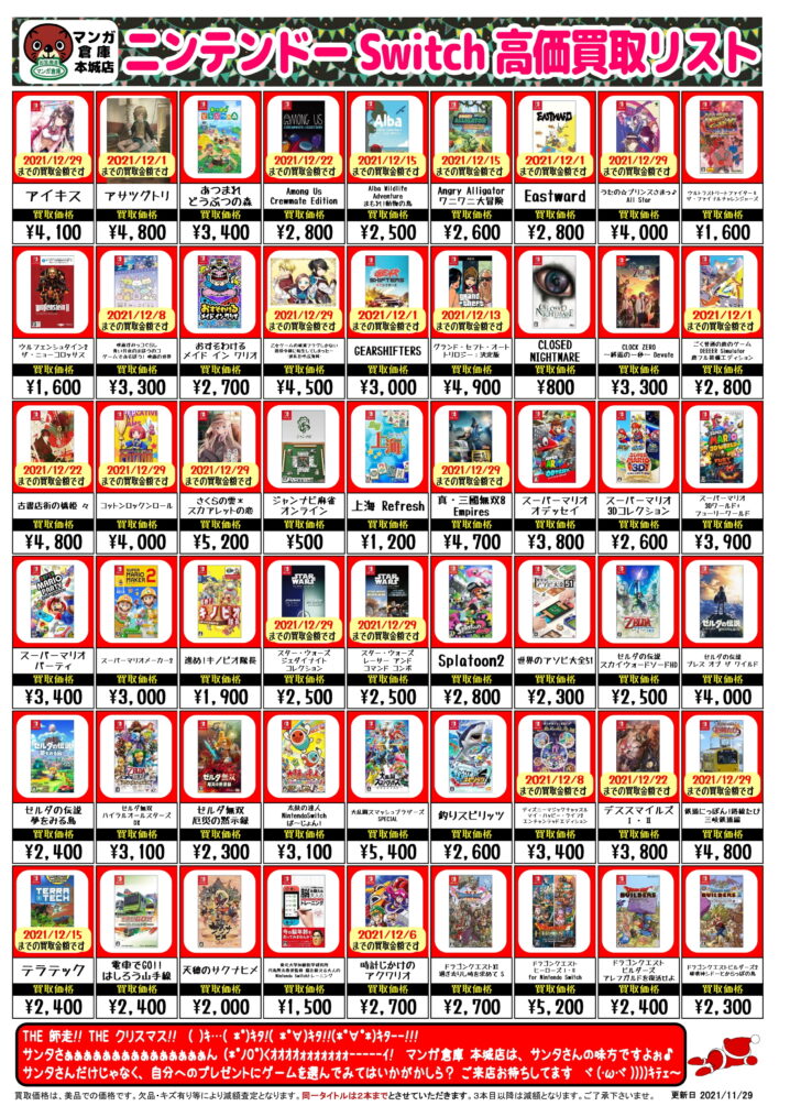 ★買取情報★ こんばんは🌃 ゲーム担当です🥱 お待たせしました Switchソフトの買取リストを更新しましたっ‼️ もちろん12月発売ソフトも入ってます…