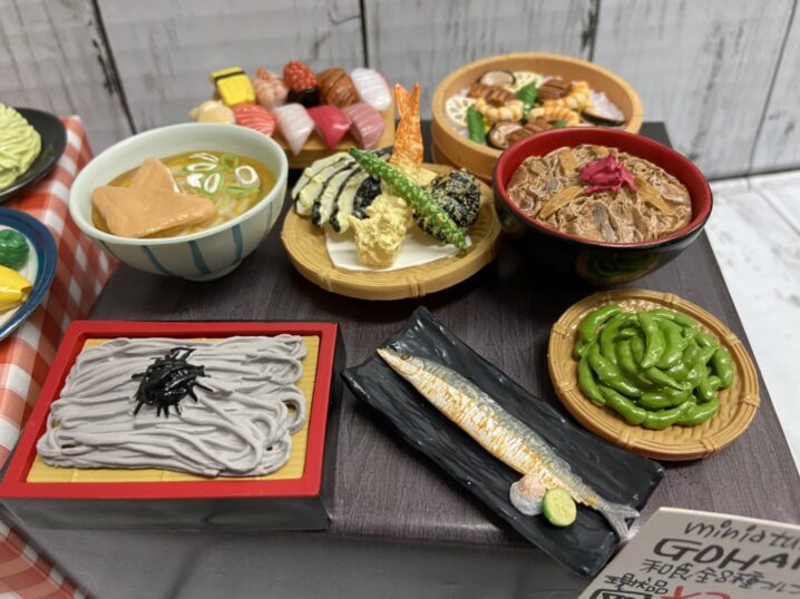 おもちゃコーナーより ミニチュアGOHAN入荷しました😊 和食、洋食、中華どれも美味しそう〜 そしてミニチュアで可愛い😍 お部屋にちょこっと飾ってみては❤️ ぜ…