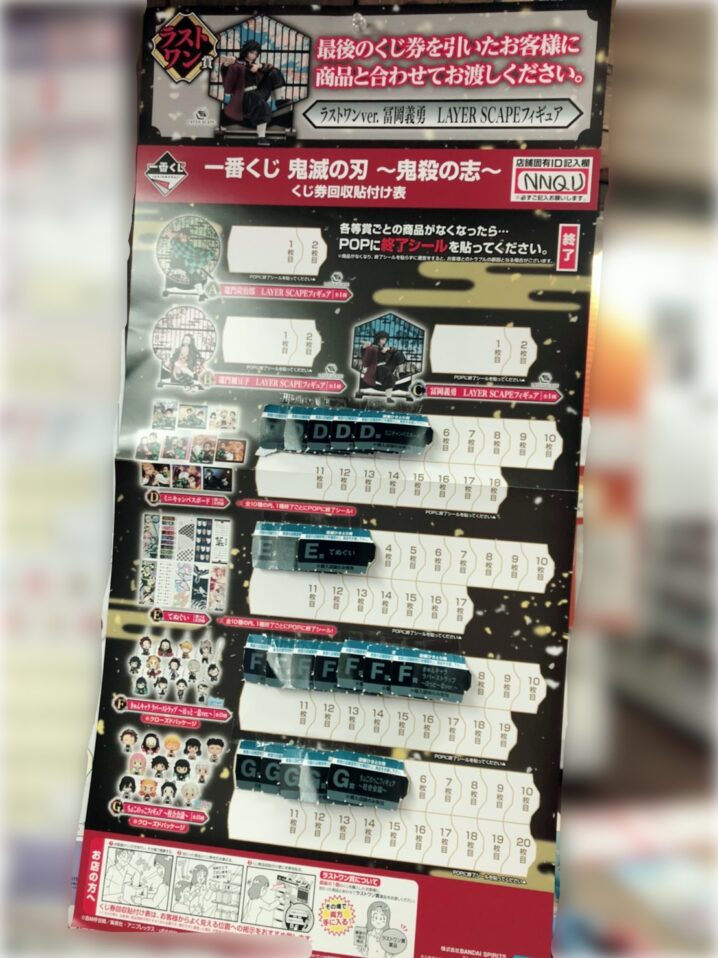 おもちゃコーナーより 一番くじ 鬼滅の刃 鬼殺の志 まだ在庫ありますよ~! 回数の制限は1回の お会計につき1グループ様 連続5回までとなっております~! 運試しするなら当店へ~!