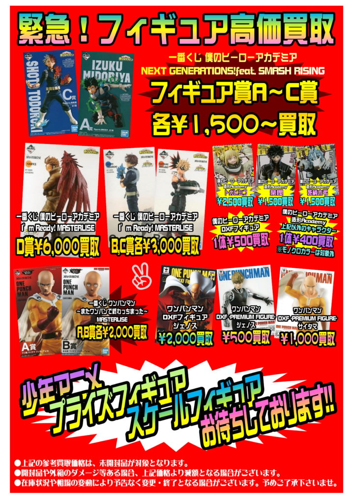 緊急告知! ヒロアカ|ハイキュー!!|進撃の巨人|約束のネバーランドなど フィギュア高価買取中! 買取の際は是非当店へお持ちください! 皆様からの買取じゃんじゃんお待ちしております(∩´∀`)∩ ※2020/12/24現…