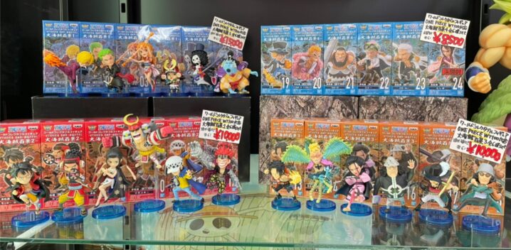 ★おもちゃコーナーよりお知らせ★ ショーケースにたくさん商品出せたよ~🤤✨ ワンピースもドラゴンボールもぜひ見に来てね~😊😊😊 …