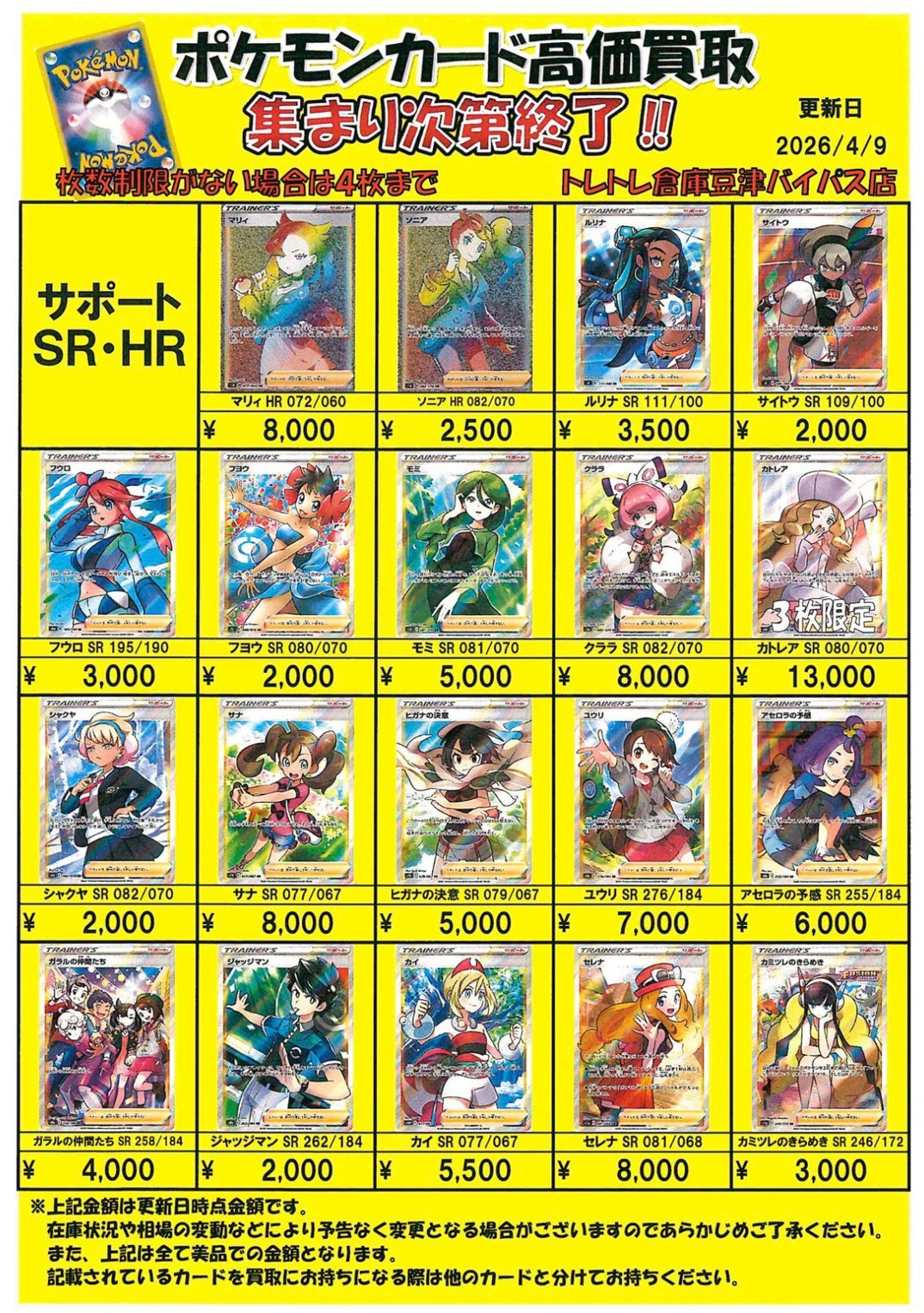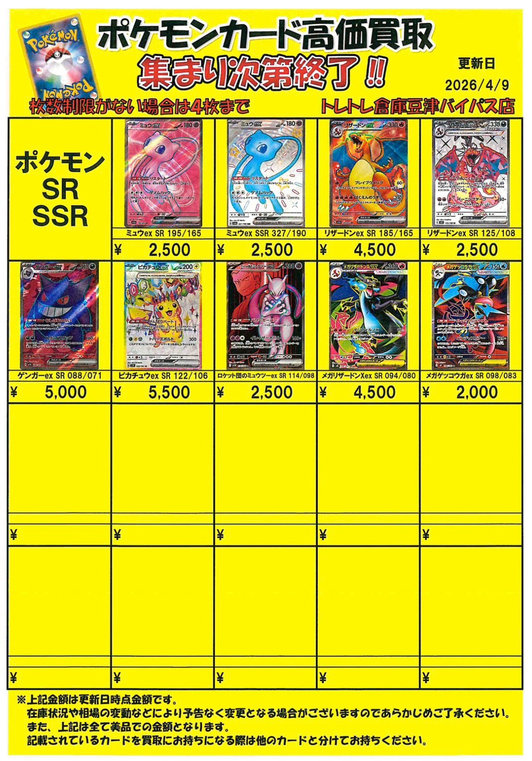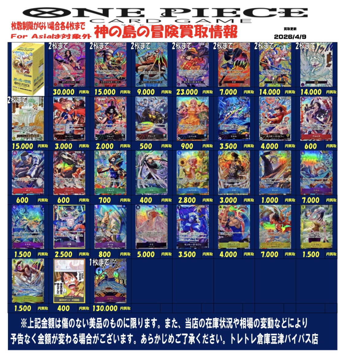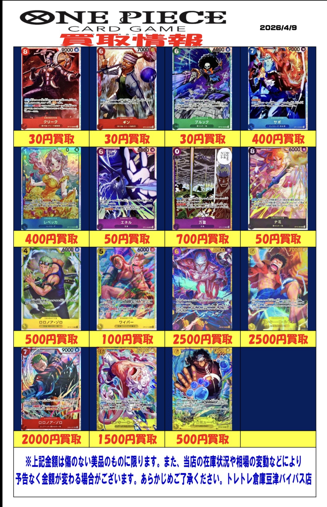 2026/4/9 更新 ■ワンピース■ ■ポケモンカード■ ■ポケモンフレンダ■ ■ガンダムカードゲーム■準備中・・・ ■ドラゴンボールフュージョンワールド■準備中・・・■ホロライブOCG■準備中・・・■クロスタ■準備中・・・ ■コナンカード■準備中… ■ドラゴンボールヒーローズ■準備中… ■遊戯王■準備中… ■シャドウバース■準備中… ■デュエルマスターズ■準備中…