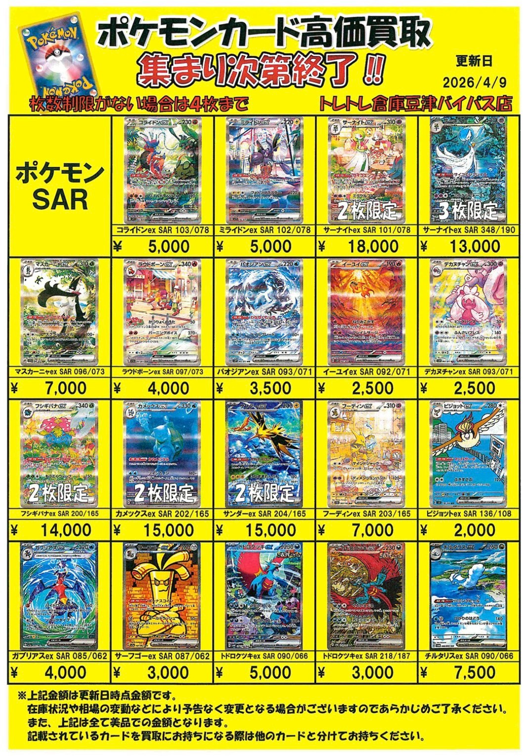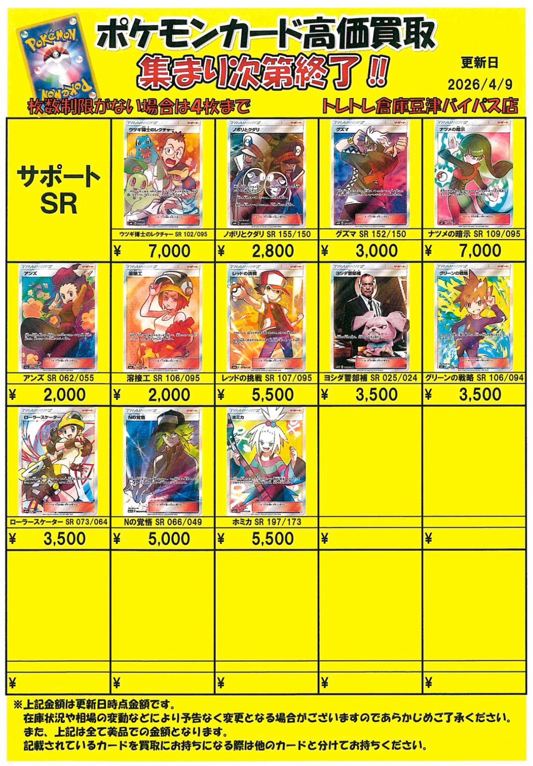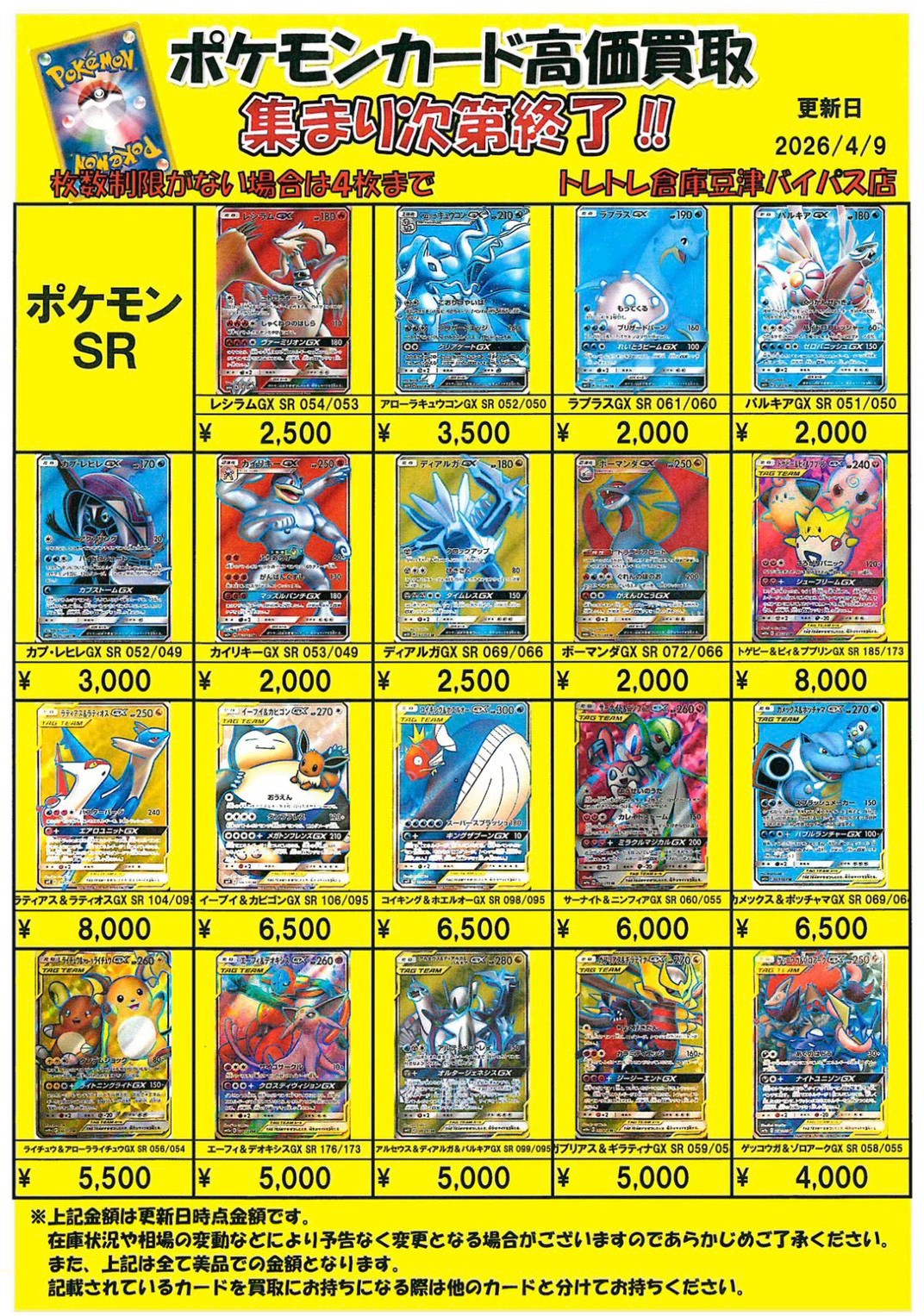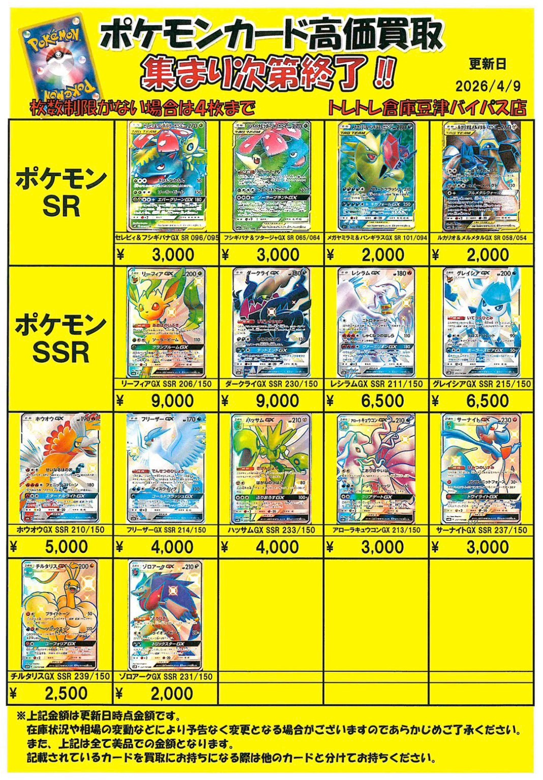 2026/4/9 更新 ■ワンピース■ ■ポケモンカード■ ■ポケモンフレンダ■ ■ガンダムカードゲーム■準備中・・・ ■ドラゴンボールフュージョンワールド■準備中・・・■ホロライブOCG■準備中・・・■クロスタ■準備中・・・ ■コナンカード■準備中… ■ドラゴンボールヒーローズ■準備中… ■遊戯王■準備中… ■シャドウバース■準備中… ■デュエルマスターズ■準備中…