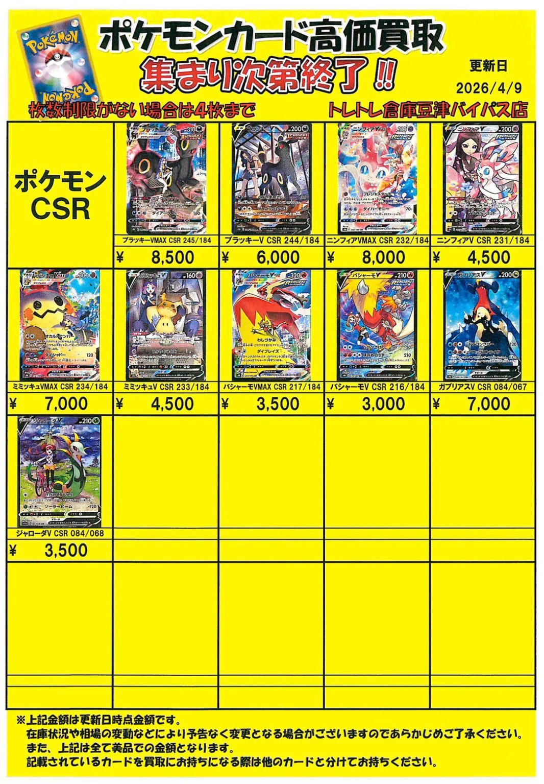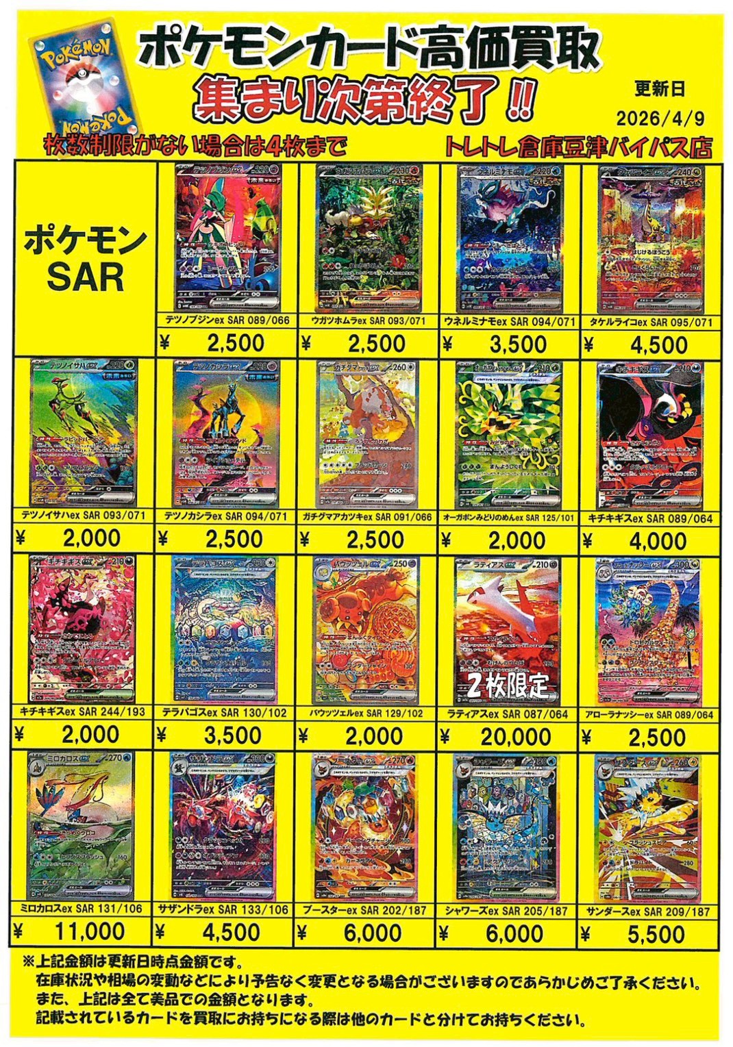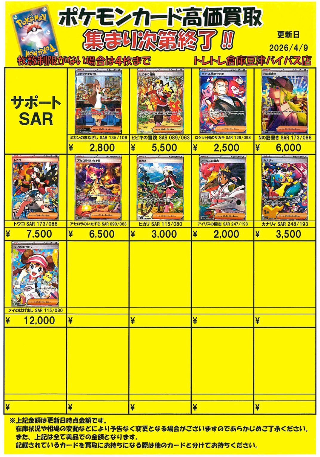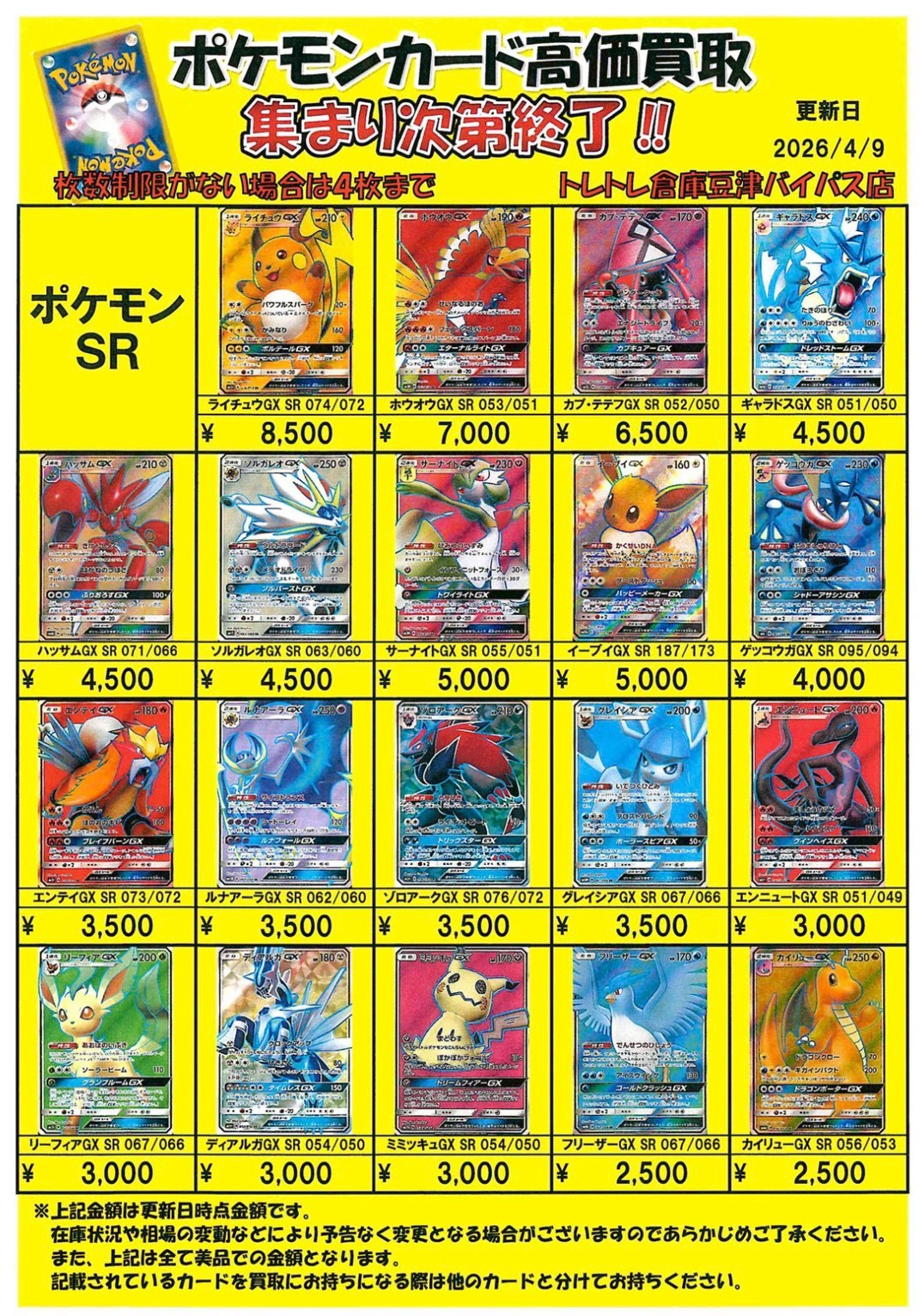 2026/4/9 更新 ■ワンピース■ ■ポケモンカード■ ■ポケモンフレンダ■ ■ガンダムカードゲーム■準備中・・・ ■ドラゴンボールフュージョンワールド■準備中・・・■ホロライブOCG■準備中・・・■クロスタ■準備中・・・ ■コナンカード■準備中… ■ドラゴンボールヒーローズ■準備中… ■遊戯王■準備中… ■シャドウバース■準備中… ■デュエルマスターズ■準備中…