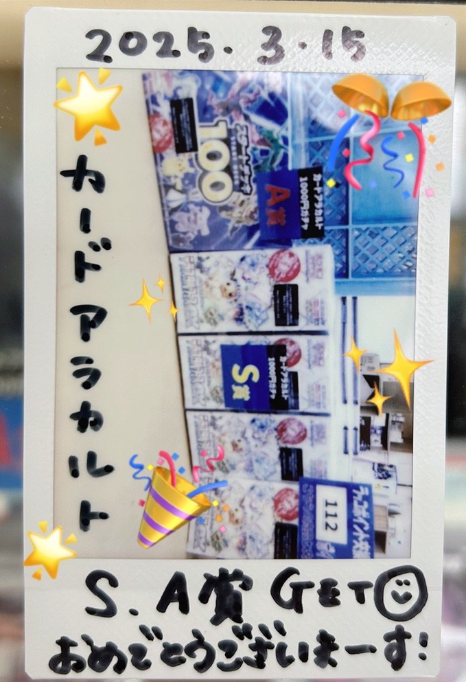 2025.03.16 カード takalab_3 🌟カードコーナーガチャよりお知らせ🌟 🔥好評稼働中🔥 カードアラカルト1000円ガチャにて🏆S賞&A賞🏆出ました‼️ おめでとうございます🎉🎉 テラスタルフェスex3BOXセット、スタートデッキ100セットを選んでいただきました👏✨✨ アラカルトで✨🏆豪華景品🏆✨または一回で2コ出るライト💡でWチャンスを狙うか…皆様のチャレンジ、おまちしております‼️😎 ぜひマンガ倉庫大分東店へご来店くださいませ🥹✨✨ コメントを残す コメントをキャンセルメールアドレスが公開されることはありません。 ※ が付いている欄は必須項目ですコメント ※ 名前 ※ メール ※ サイト 新しいコメントをメールで通知 新しい投稿をメールで受け取る Δ