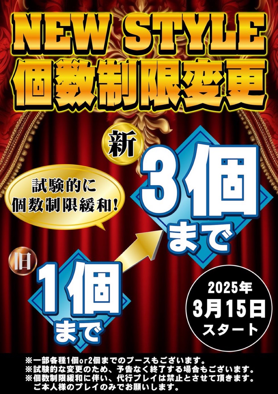 3/15(土)より試験的に個数制限緩和しておりますᕙ( ՞ټ՞ ) ᕗ