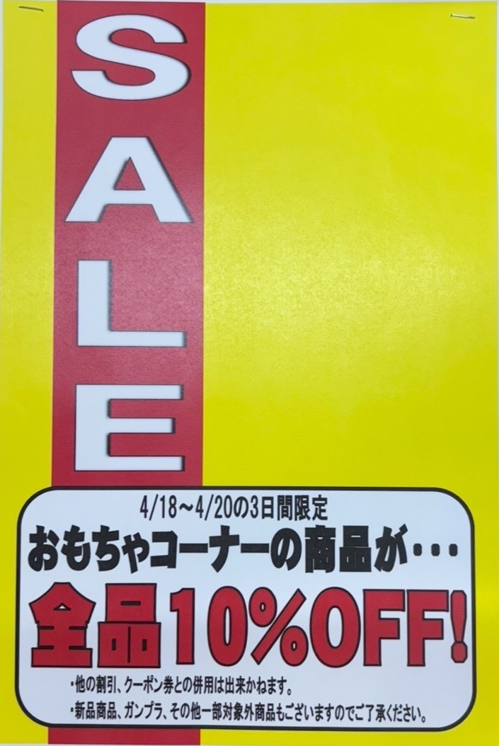 2025.04.18 イベント情報 takalab_2 《4月18日~20日》【🌷🌸🉐超SALE開催中🉐🌷🌸】 【🌷🌸🉐超SALE開催中🉐🌷🌸】 今日4/18(金)から4/20(日)までの3日間!! おもちゃコーナーで大セールやってます🉐 なんと!!!! 全品10%OFF〜〜!!!!!🥳🥳🥳✨✨ 全品はなかなか無いよ……!!!!! 一部対象外等もあります…! 詳細はPOPをご覧下さいね🥰♥️ この機会に、欲しかったおもちゃをお得にGETしよう🤲🏻♥️ マンガ倉庫大分東店でお待ちしております!🎶 コメントを残す コメントをキャンセルメールアドレスが公開されることはありません。 ※ が付いている欄は必須項目ですコメント ※ 名前 ※ メール ※ サイト 新しいコメントをメールで通知 新しい投稿をメールで受け取る Δ